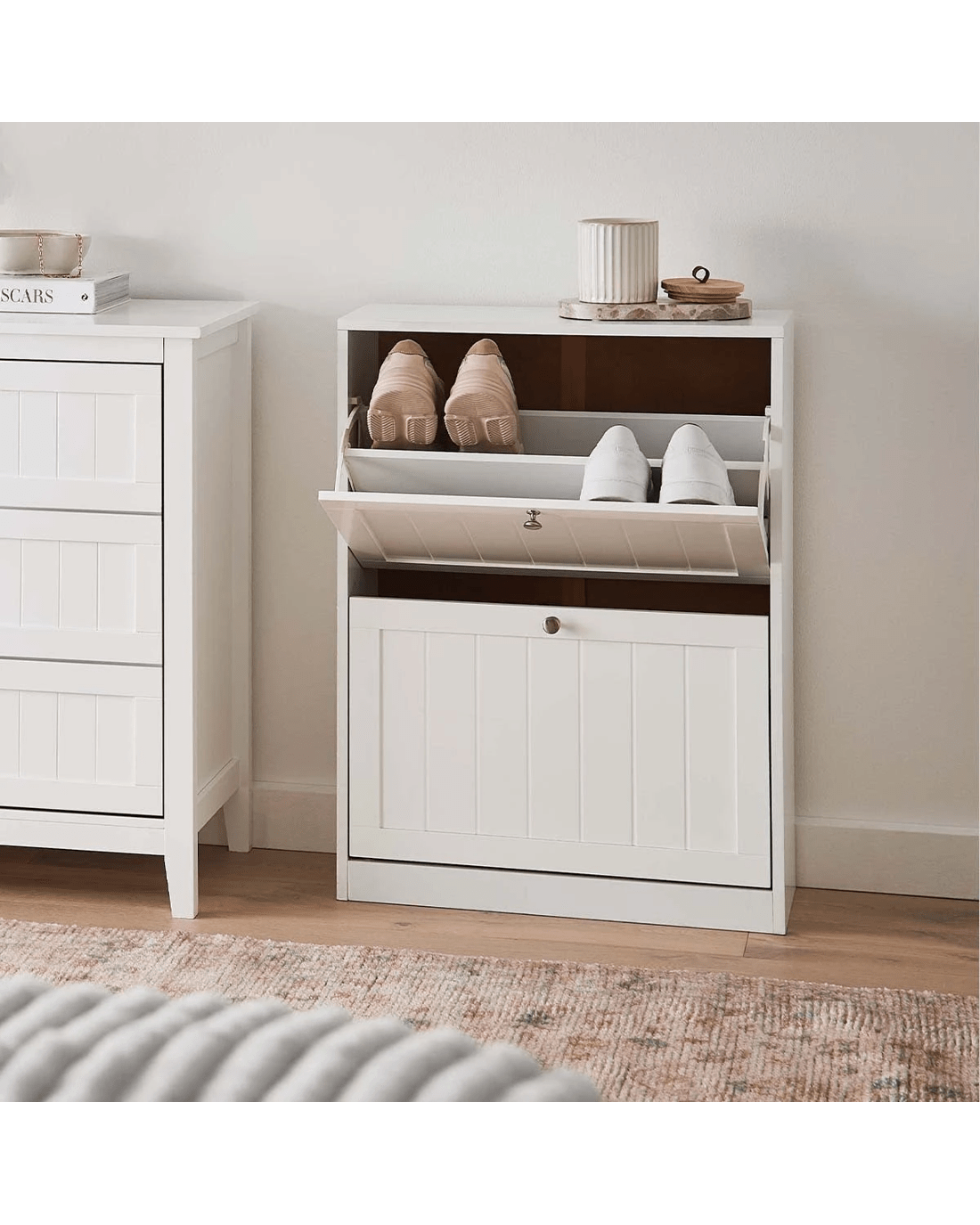 2 Tier Panelled Shoe Cabinet