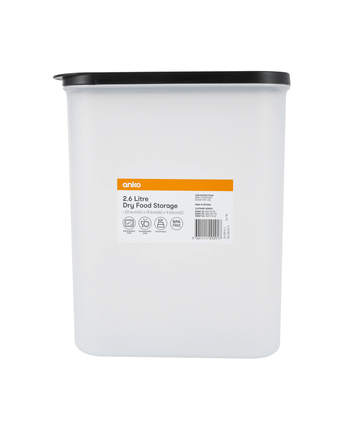 Keep your pantry organised and your food fresh with this versatile 2.6-Litre Dry Food Storage. Designed for everyday convenience, it's perfect for storing grains, pasta, snacks and more.