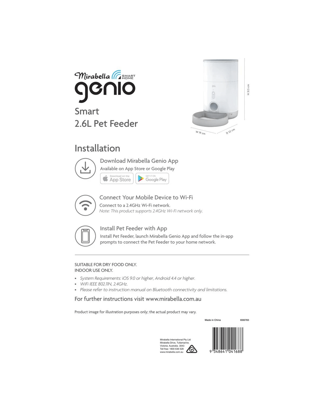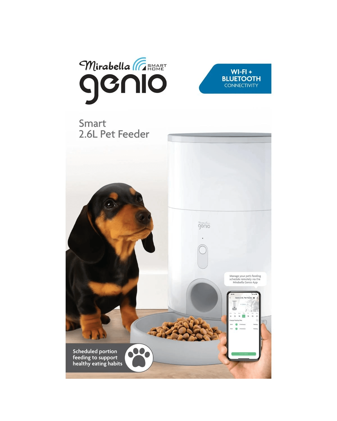 Keep your furry friend fed, happy and connected - no matter where you are! The Mirabella Genio Smart 2.6L Pet Feeder combines convenience, technology and peace of mind to make pet care effortless. With built-in Wi-Fi and smart app control, you can schedule meals, monitor feeding times, and ensure your pet’s needs are met - all from your smartphone.