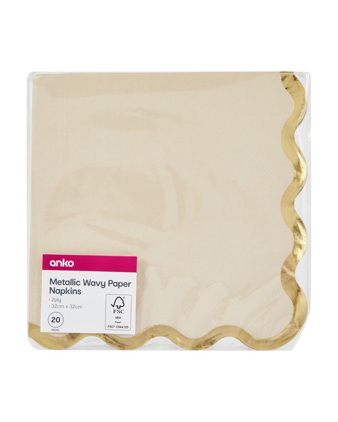 Complete your table setting with these 20 Piece Metallic Wavy Paper Napkins. They’re perfect for entertaining guests and special occasions.