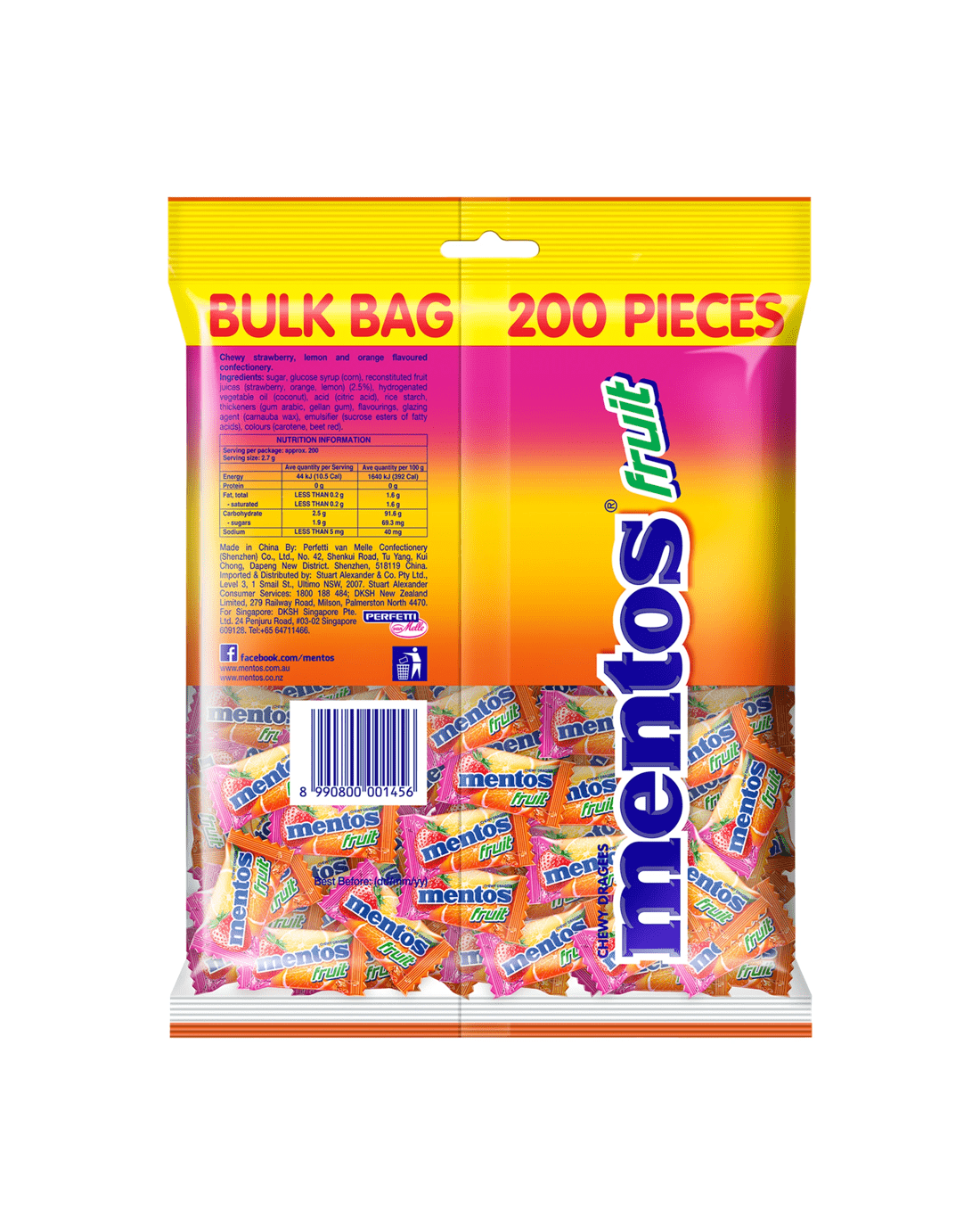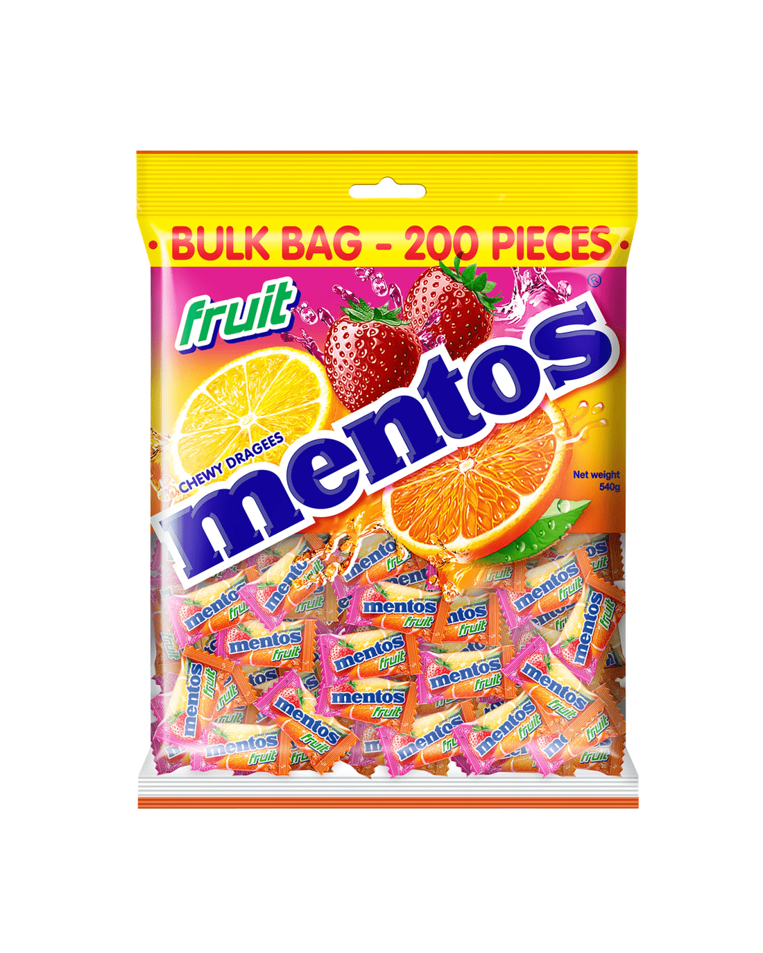 Looking for a refreshing treat? Look no further than Mentos Fruit Pillow Pack Bag! This 540g pack is filled with fruity chewy candy that will leave your breath feeling fresh. Whether you're on-the-go or looking to enjoy a tasty treat at home, this Mentos Fruit Bag is perfect for you. The individually packed bag makes it easy to keep your candy fresh and the chewy texture will keep you coming back for more. Share with friends or keep it all to yourself – either way, Mentos Fruit Bag is sure to satisfy your sweet tooth. Get your hands on one today and experience the refreshing taste of Mentos Fruit!