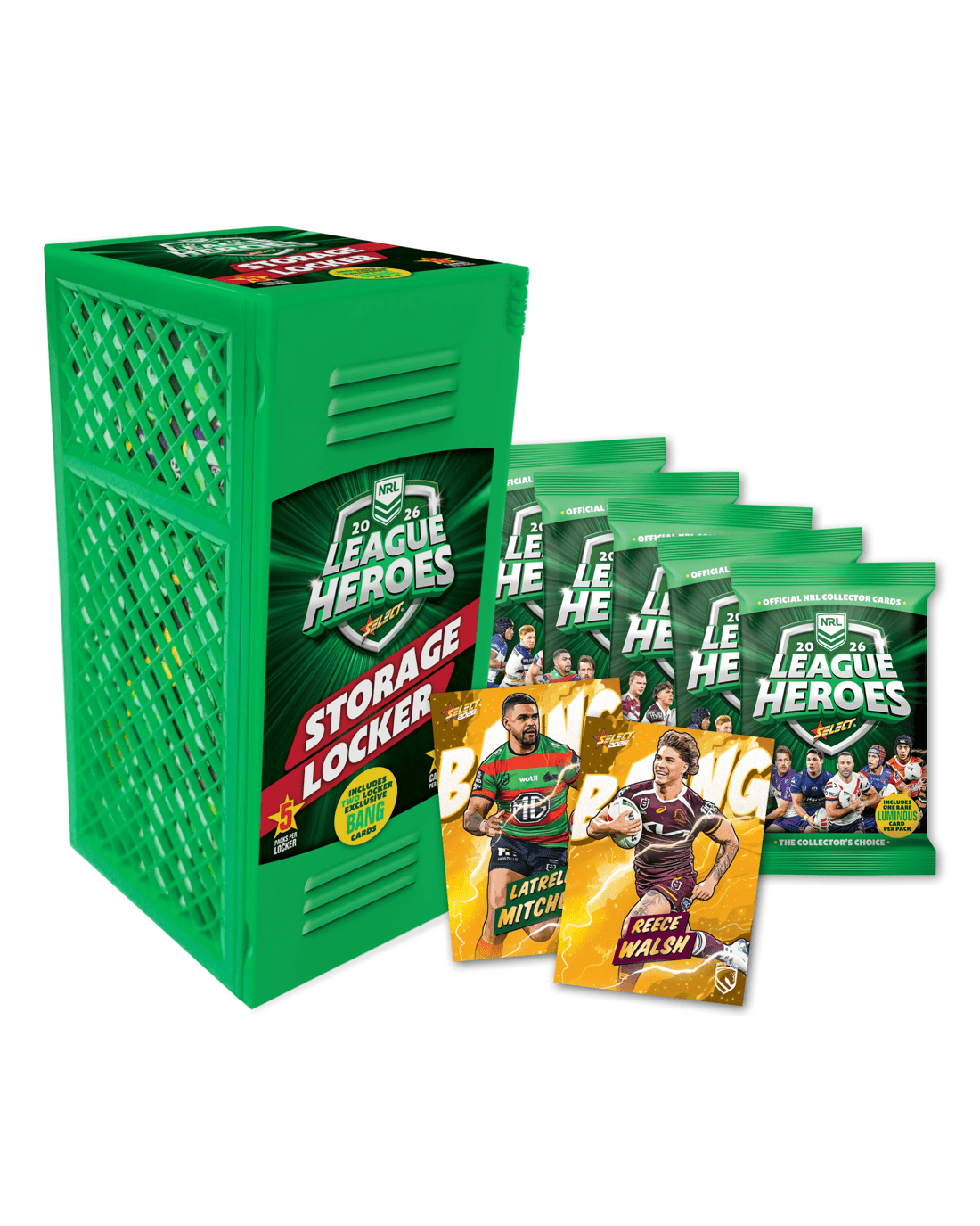 - Includes 5 x packs of 2026 NRL League Heroes and 1 x rare blaster exclusive bonus pack of two gold Bang cards
