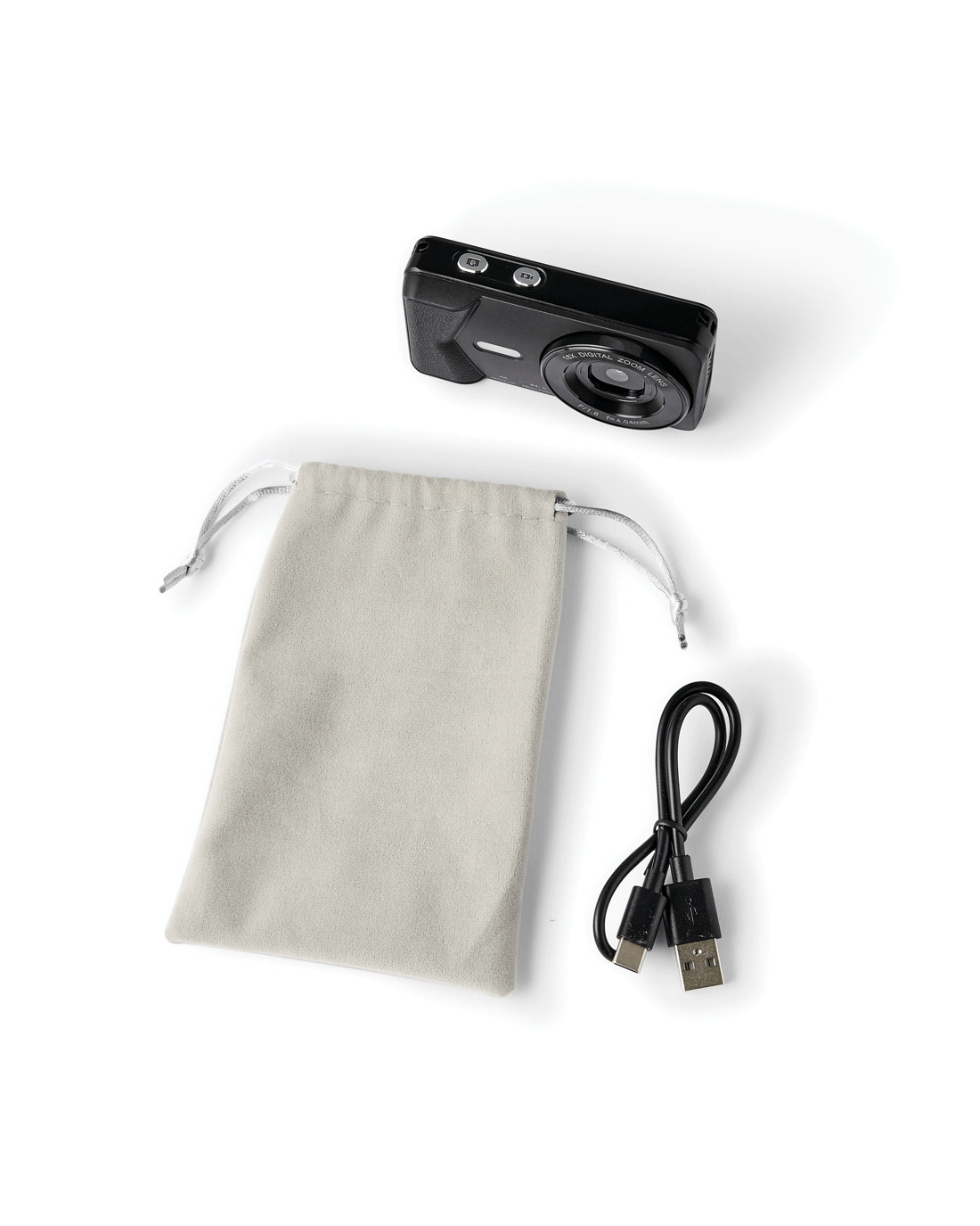 - Includes 1 x digital camera, 1 x instruction manual, 1 x camera bag, 1 x lanyard, 1 x USB-C cable (type A to type C) and 1 x 32gb microSD memory card (pre-installed)