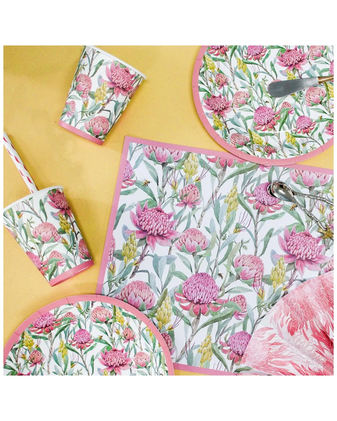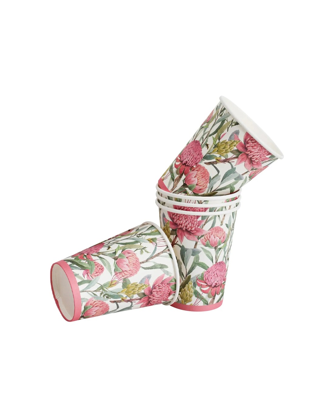 Sold by KG SuperStore20pc Round 11cm Disposable Paper Cup Dinner Party Drinkware Natives Floral Pink - Pink