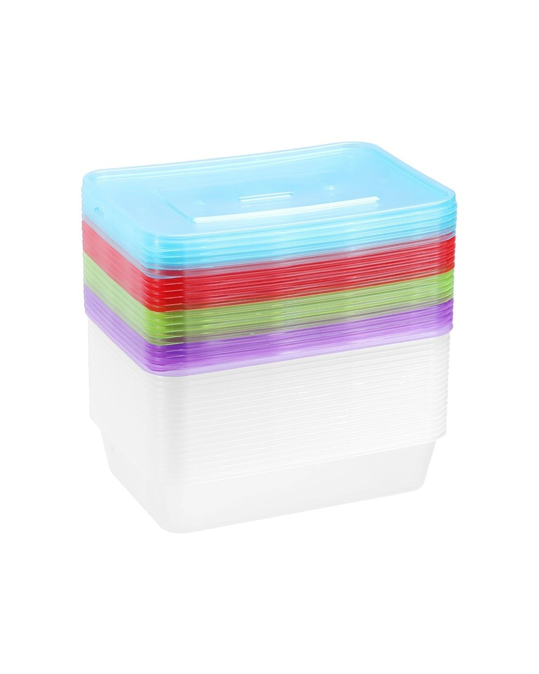 Sold by KG SuperStore20pk Lemon & Lime Rectangle 500ml Reusable Food/meal Container W/ Coloured Lids - Multi