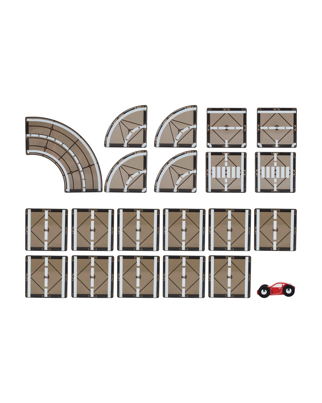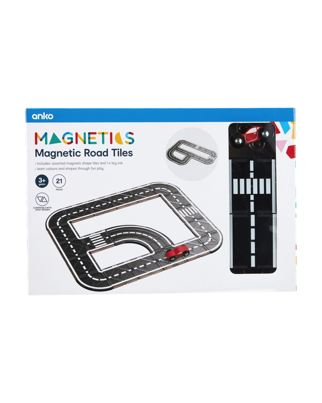 - Includes assorted magnetic shape tiles and 1 x toy car