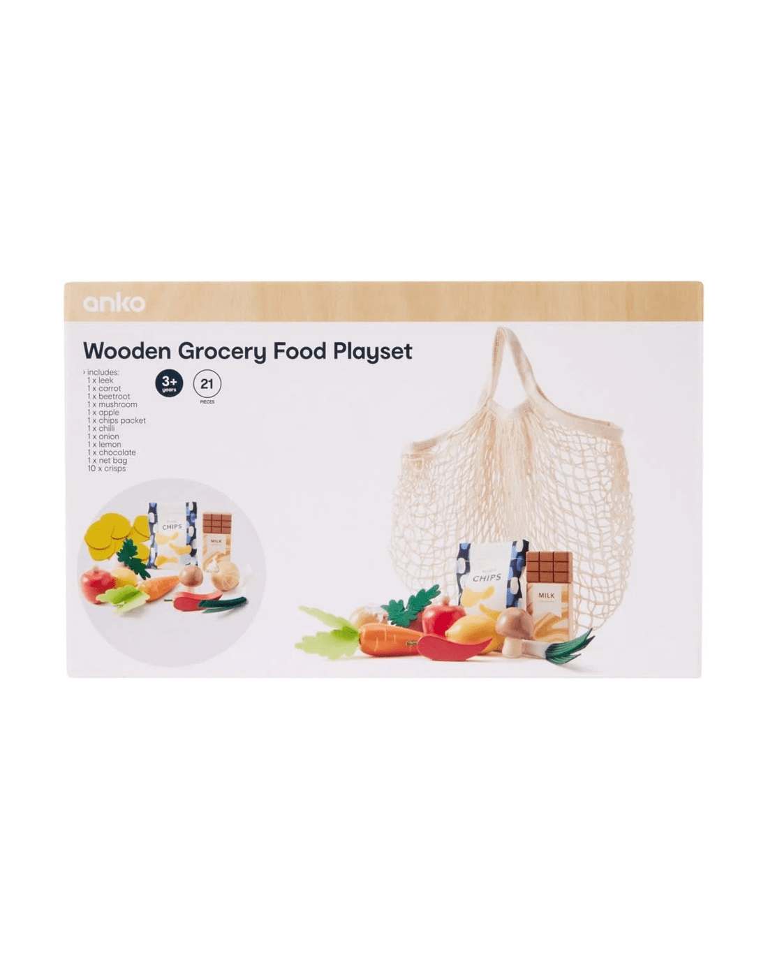 21 Piece Wooden Grocery Food Playset