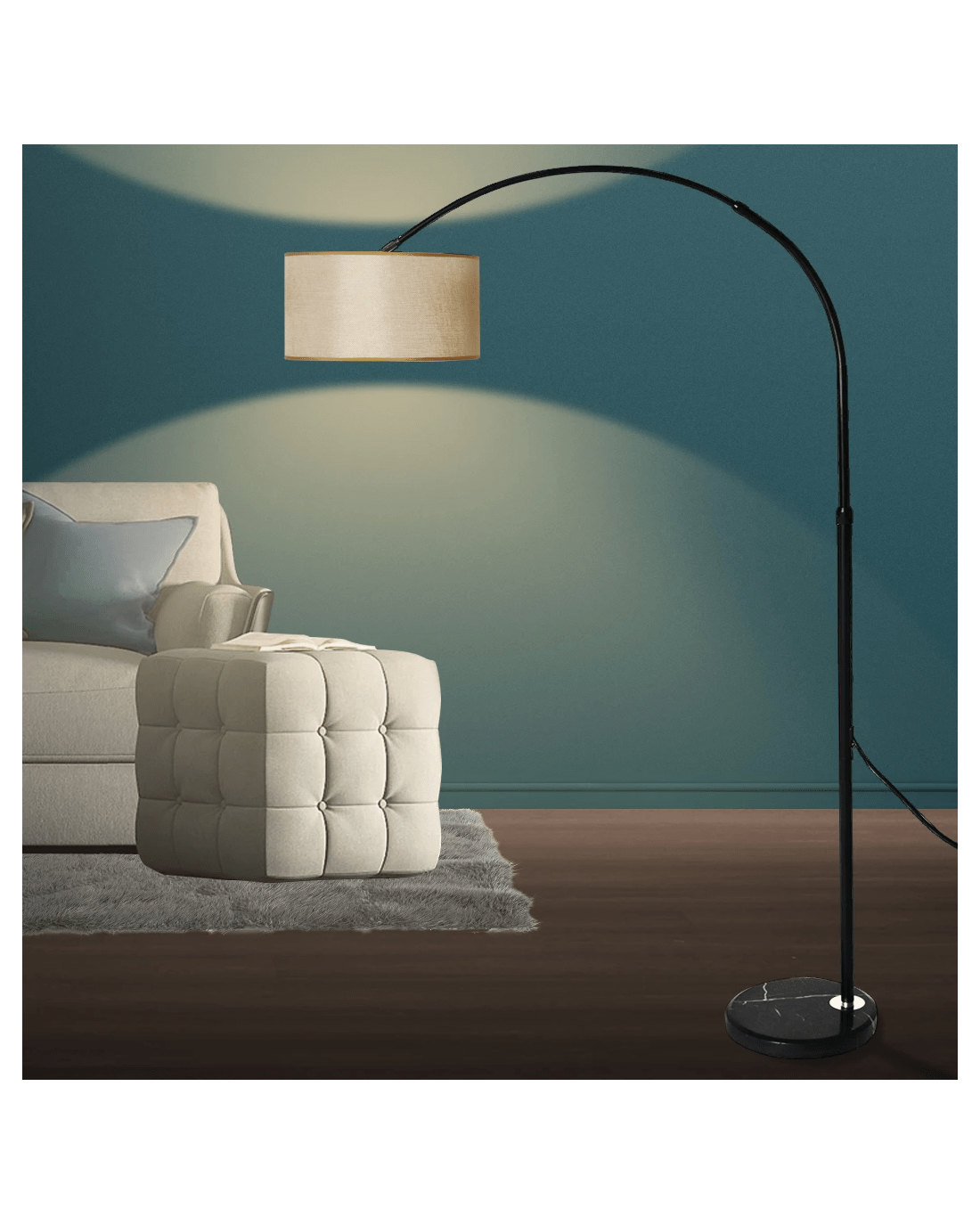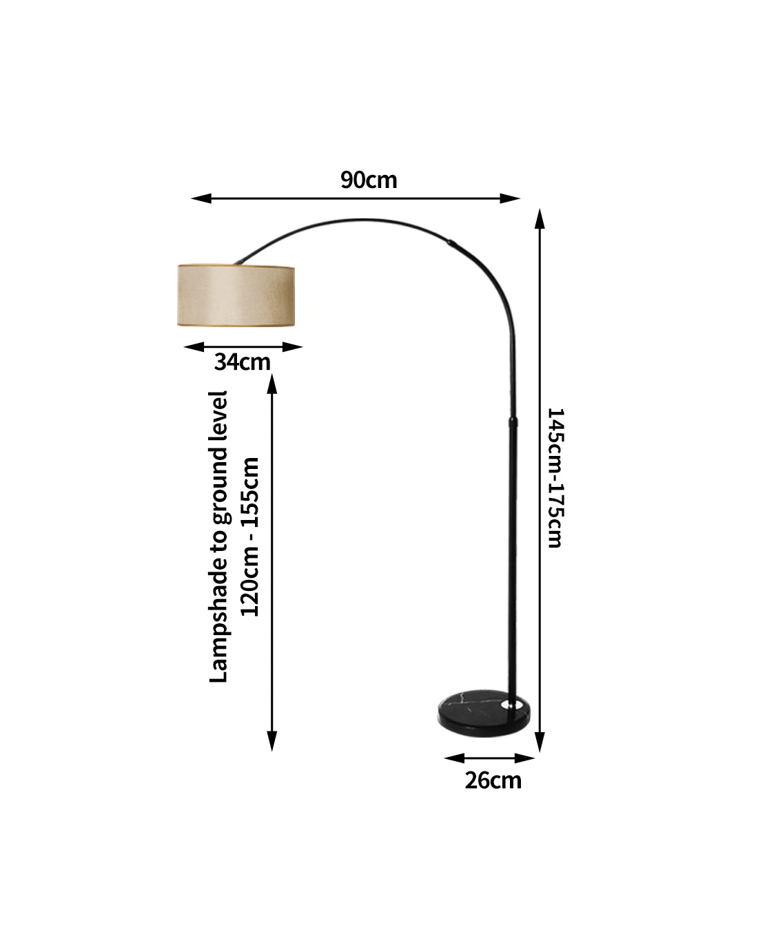 220V 60W Iron+Marble+Cloth Floor Lamp Black Stand Grey Lamp