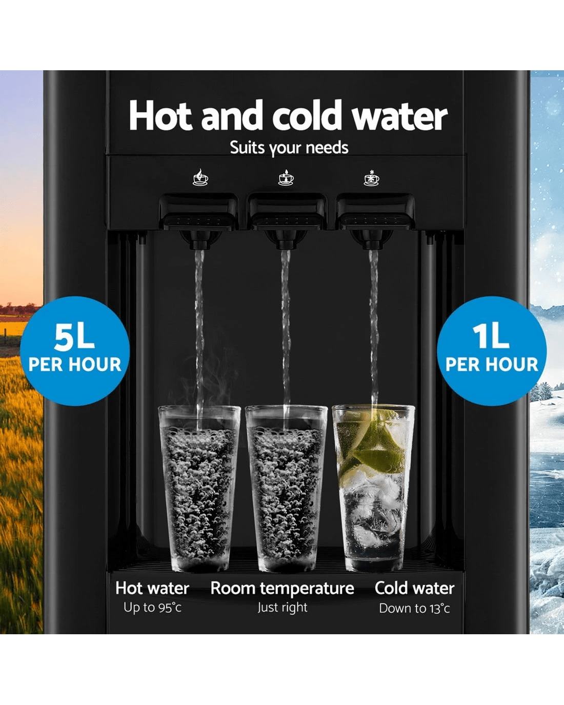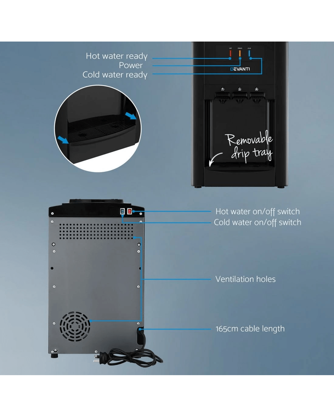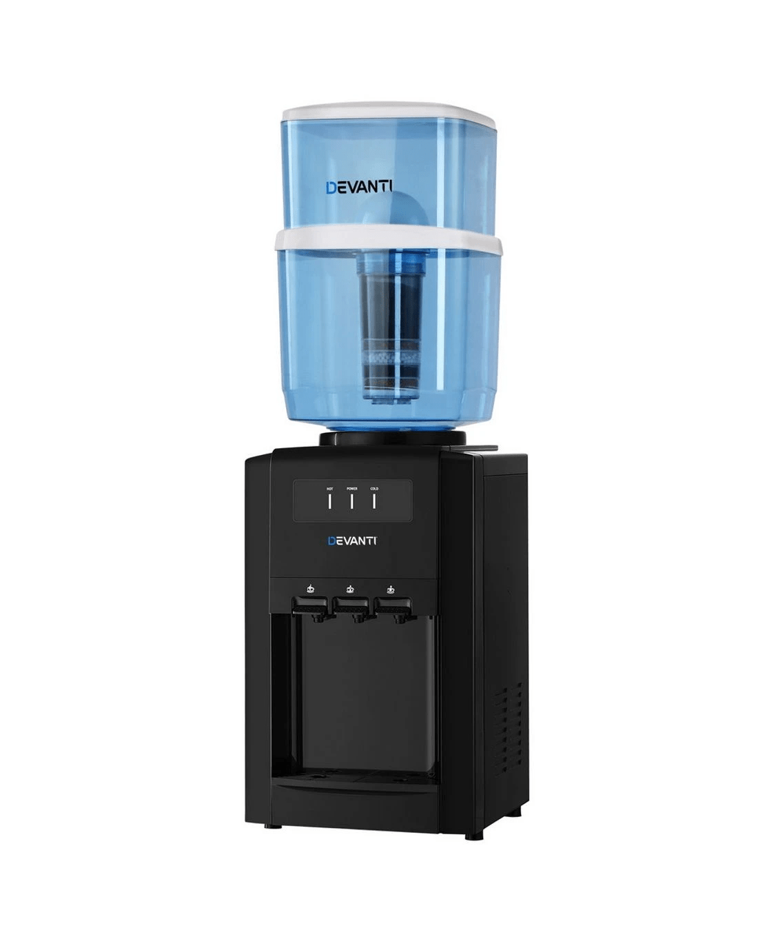 Sold by Aisle Six22L Devanti Water Cooler Dispenser Bench Top 3 Taps Chiller Filter Purifier Three Taps - Black