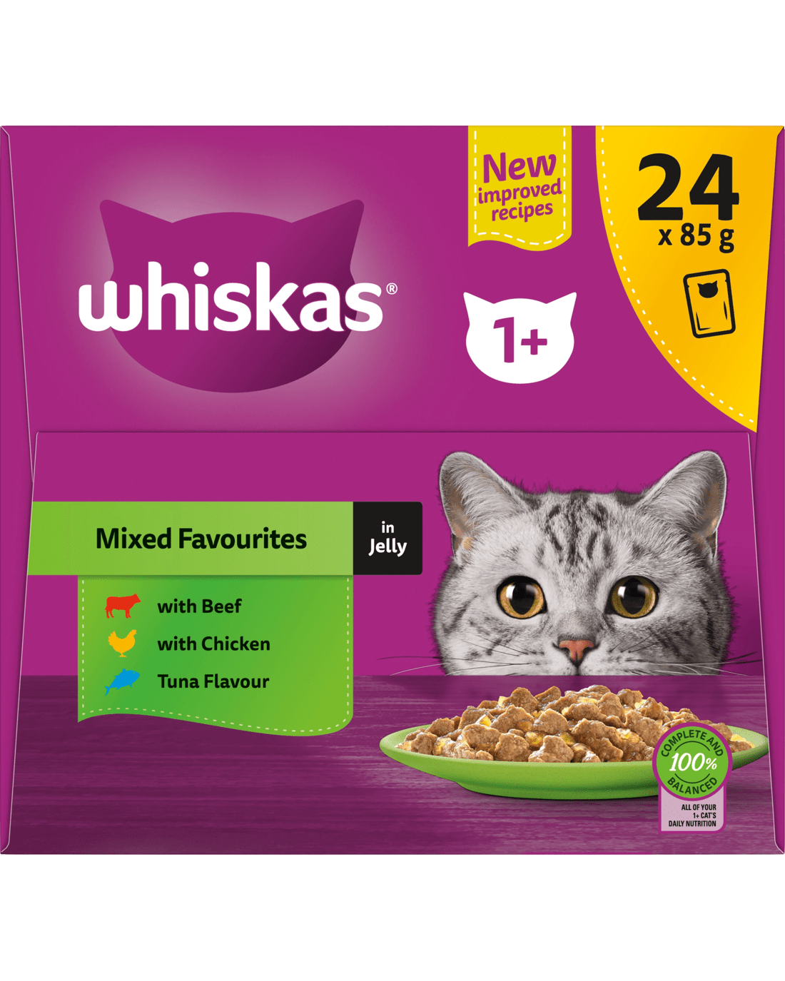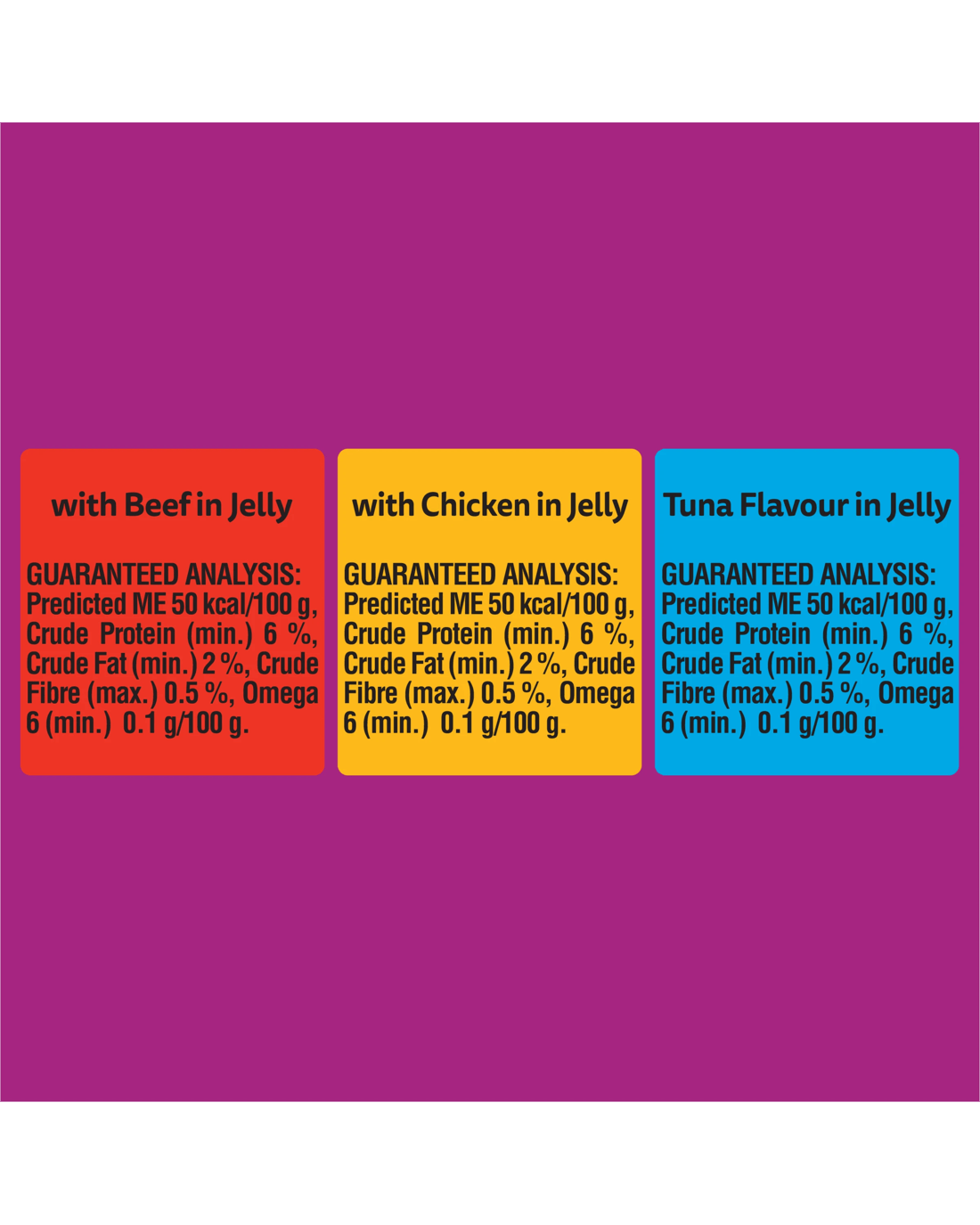 - Mixed favourites (with beef, with chicken and tuna flavour) in jelly