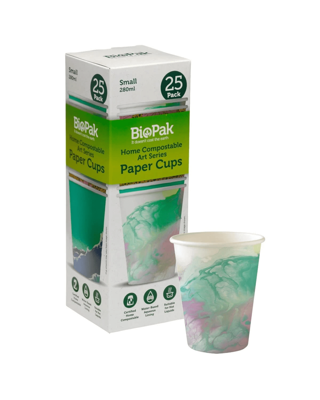 25 Pack BioPak Home Compostable Art Series Paper Cups