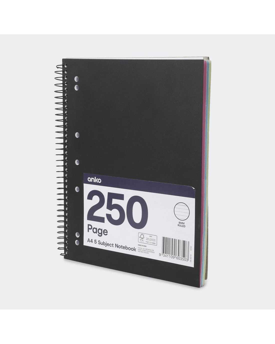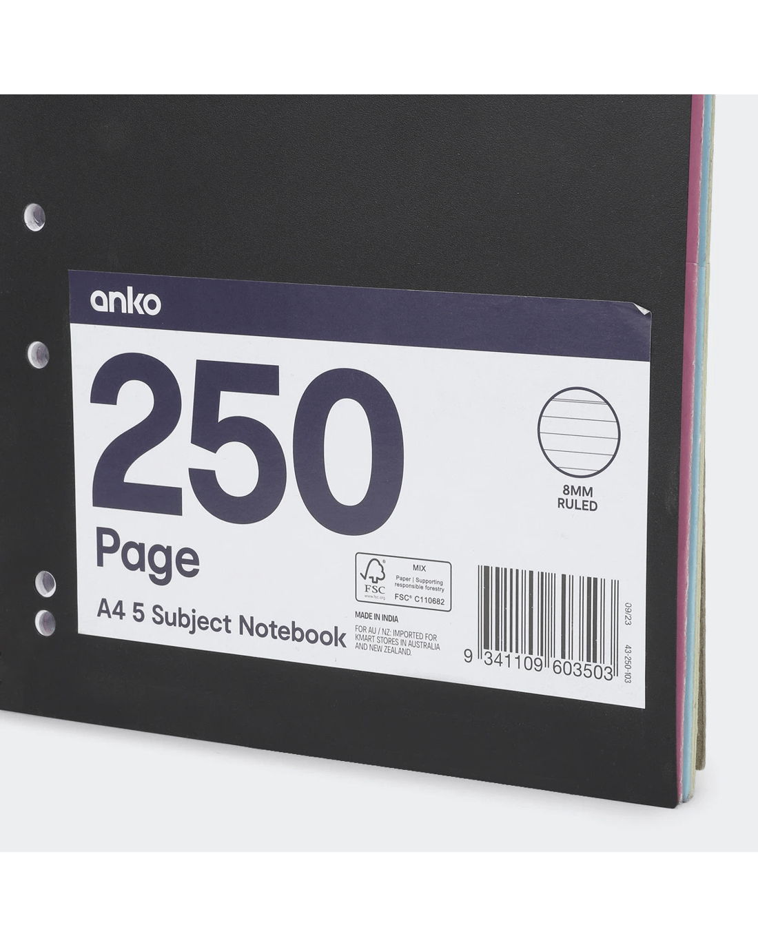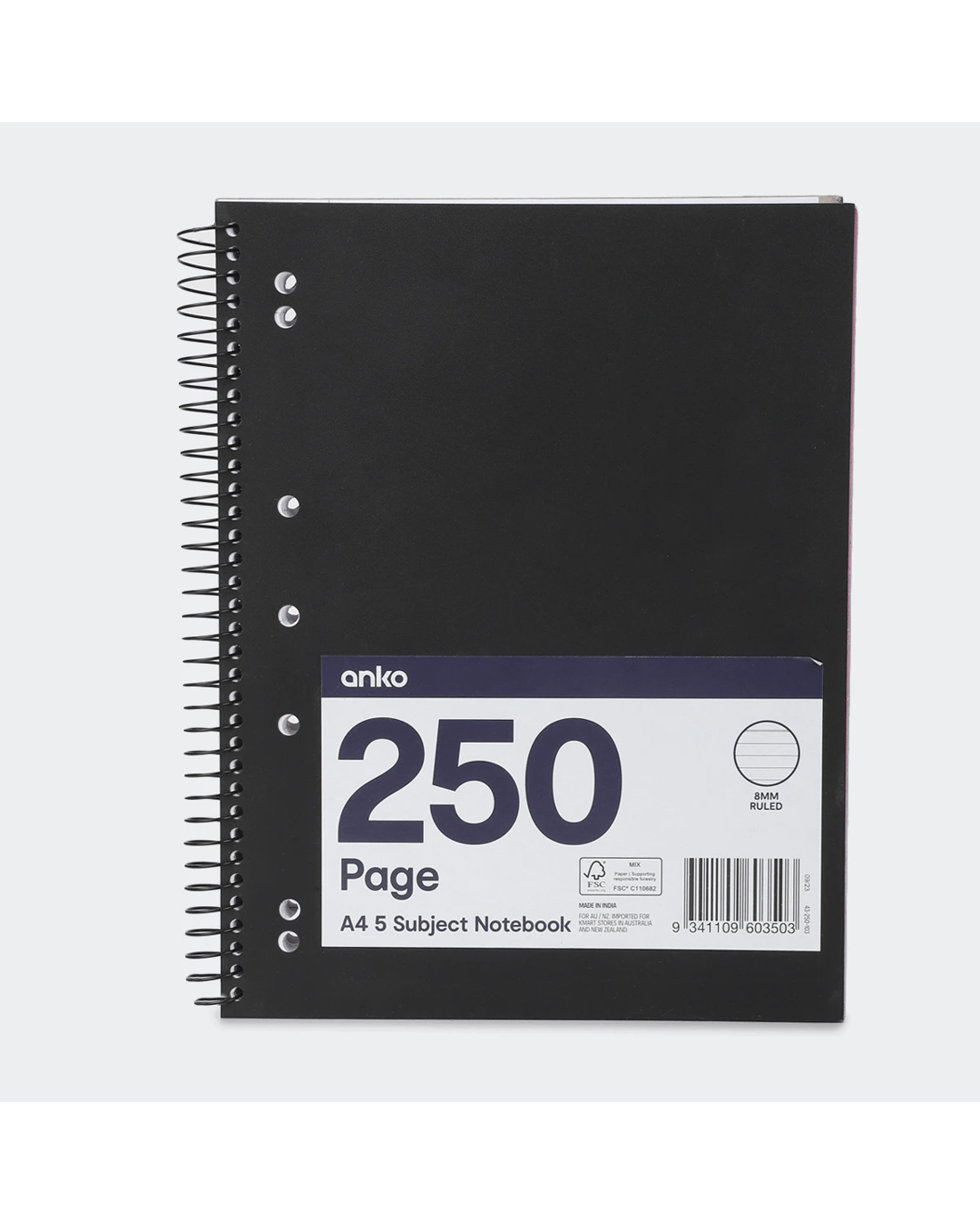Sold by Kmart250 Page A4 5 Subject Notebook - Black