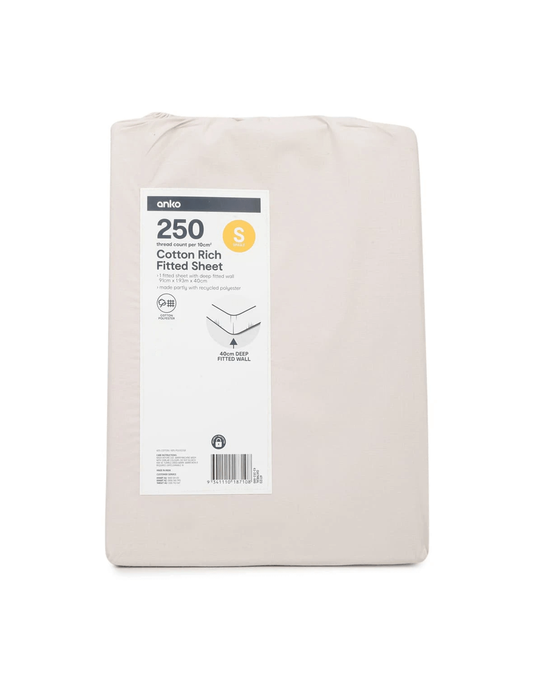 Sold by Kmart250 Thread Count Cotton Rich Fitted Sheet - Single Bed, Oatmeal
