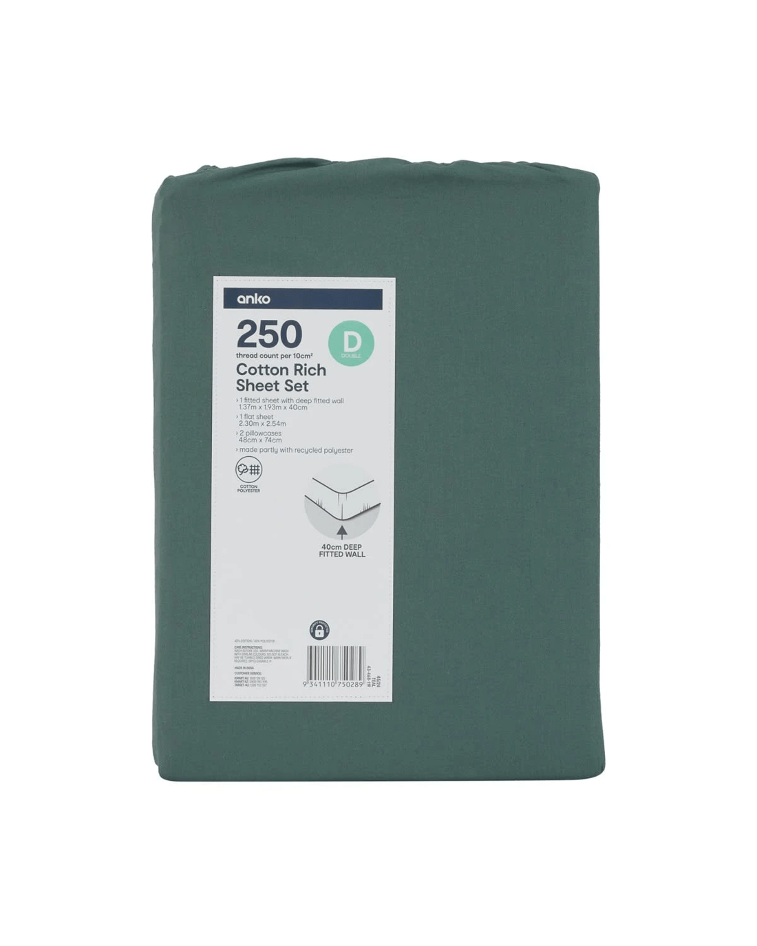 Sold by Kmart250 Thread Count Cotton Rich Sheet Set - Double Bed, Teal
