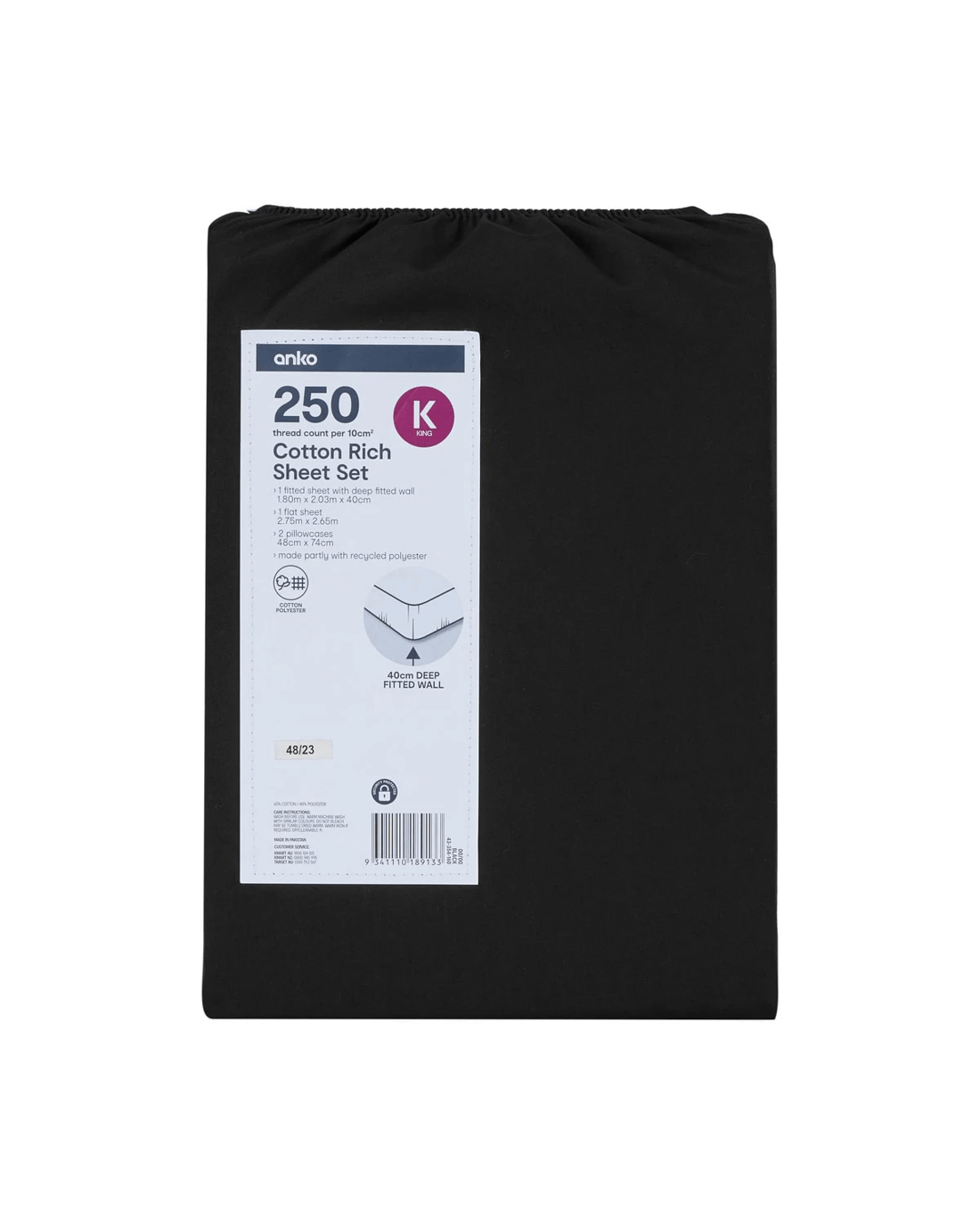 Sold by Kmart250 Thread Count Cotton Rich Sheet Set - King Bed, Black