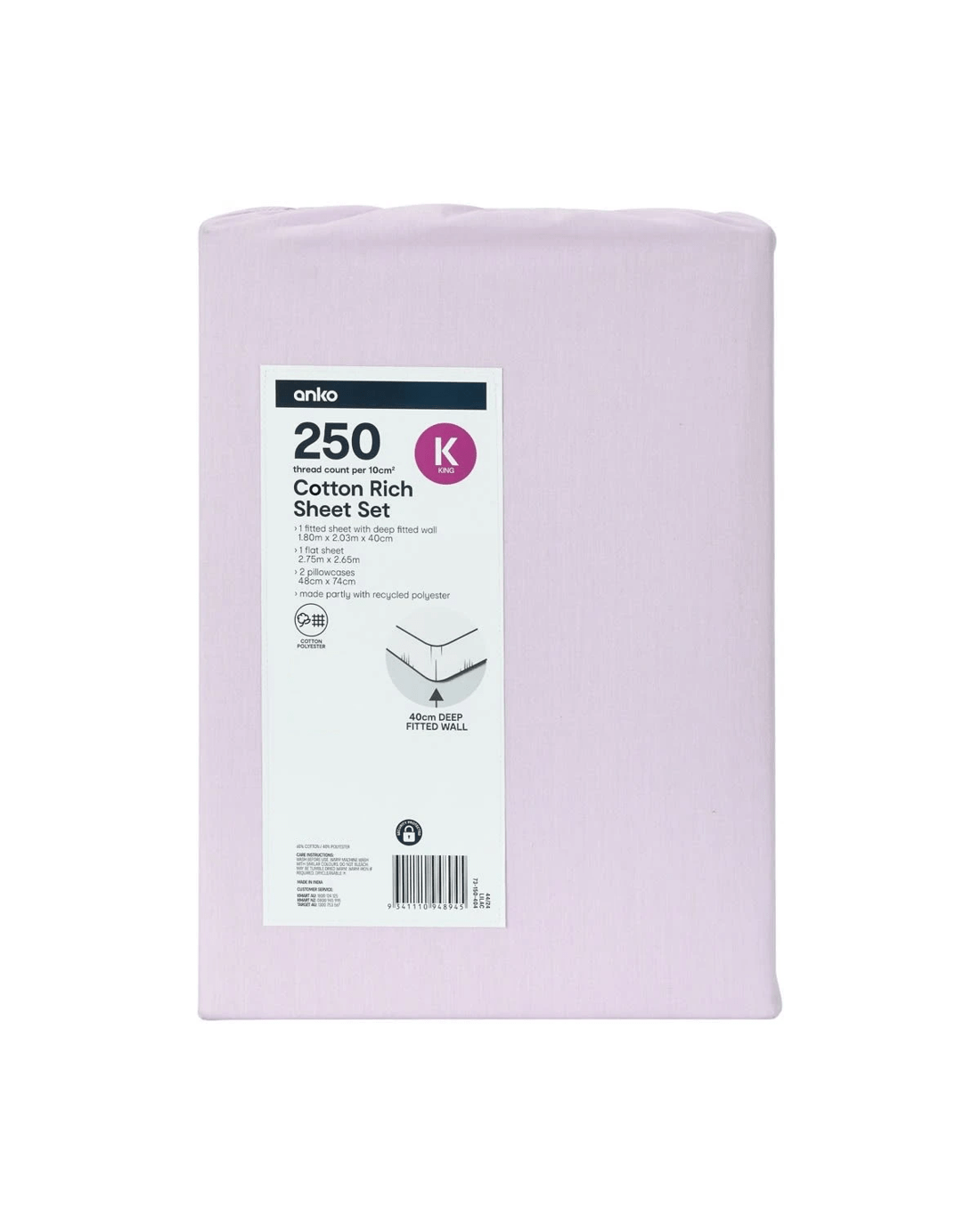 250 Thread Count Cotton Rich Sheet Set - King Bed, Lilac