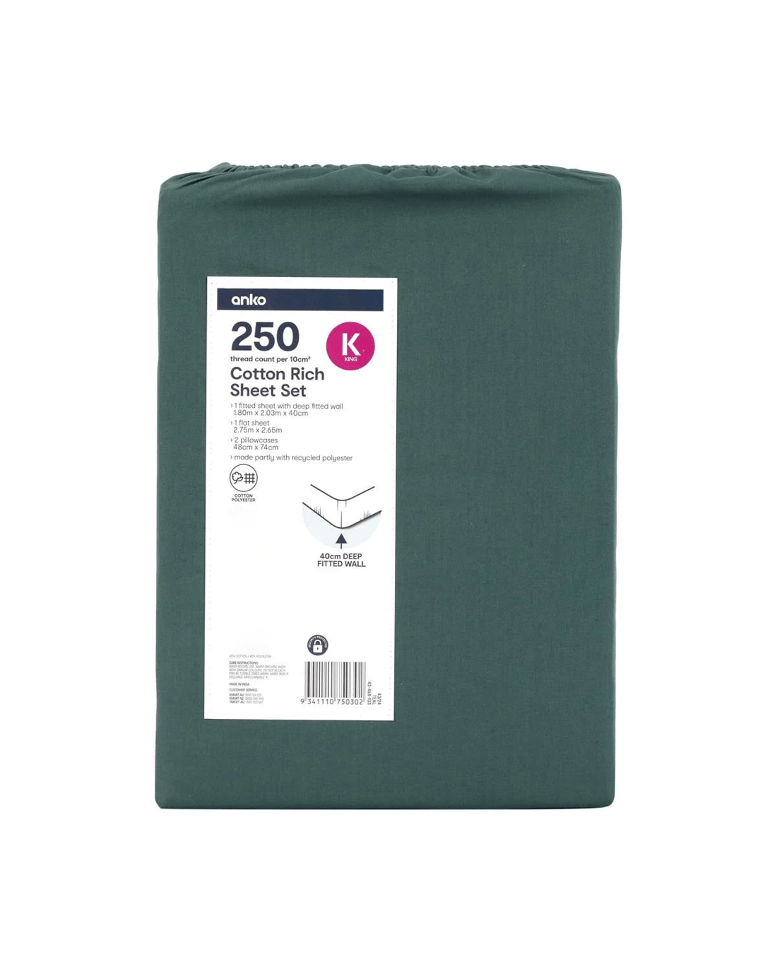 250 Thread Count Cotton Rich Sheet Set - King Bed, Teal