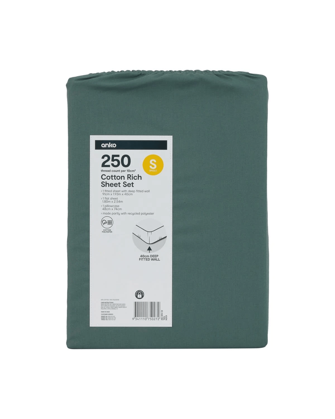 250 Thread Count Cotton Rich Sheet Set - Single Bed, Teal