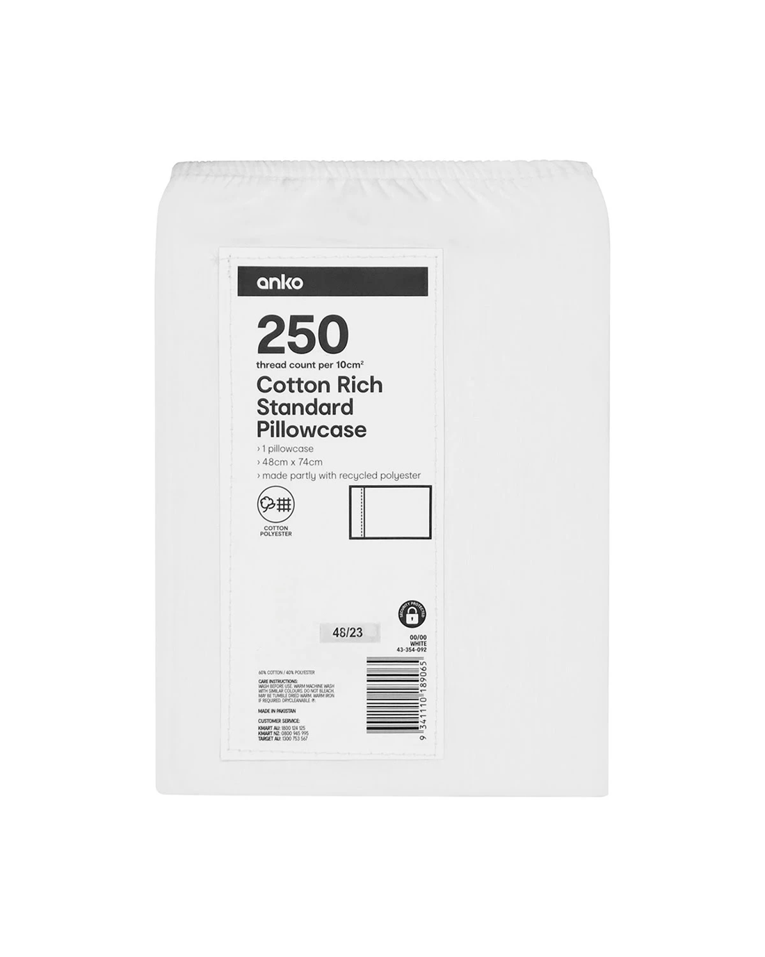 250 Thread Count Cotton Rich Standard Pillowcase - White