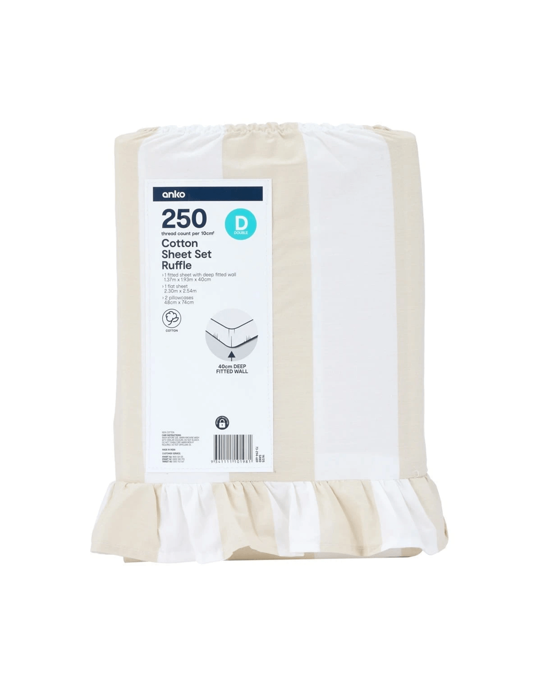 Sold by Kmart250 Thread Count Ruffle Cotton Sheet Set - Double Bed, Sand