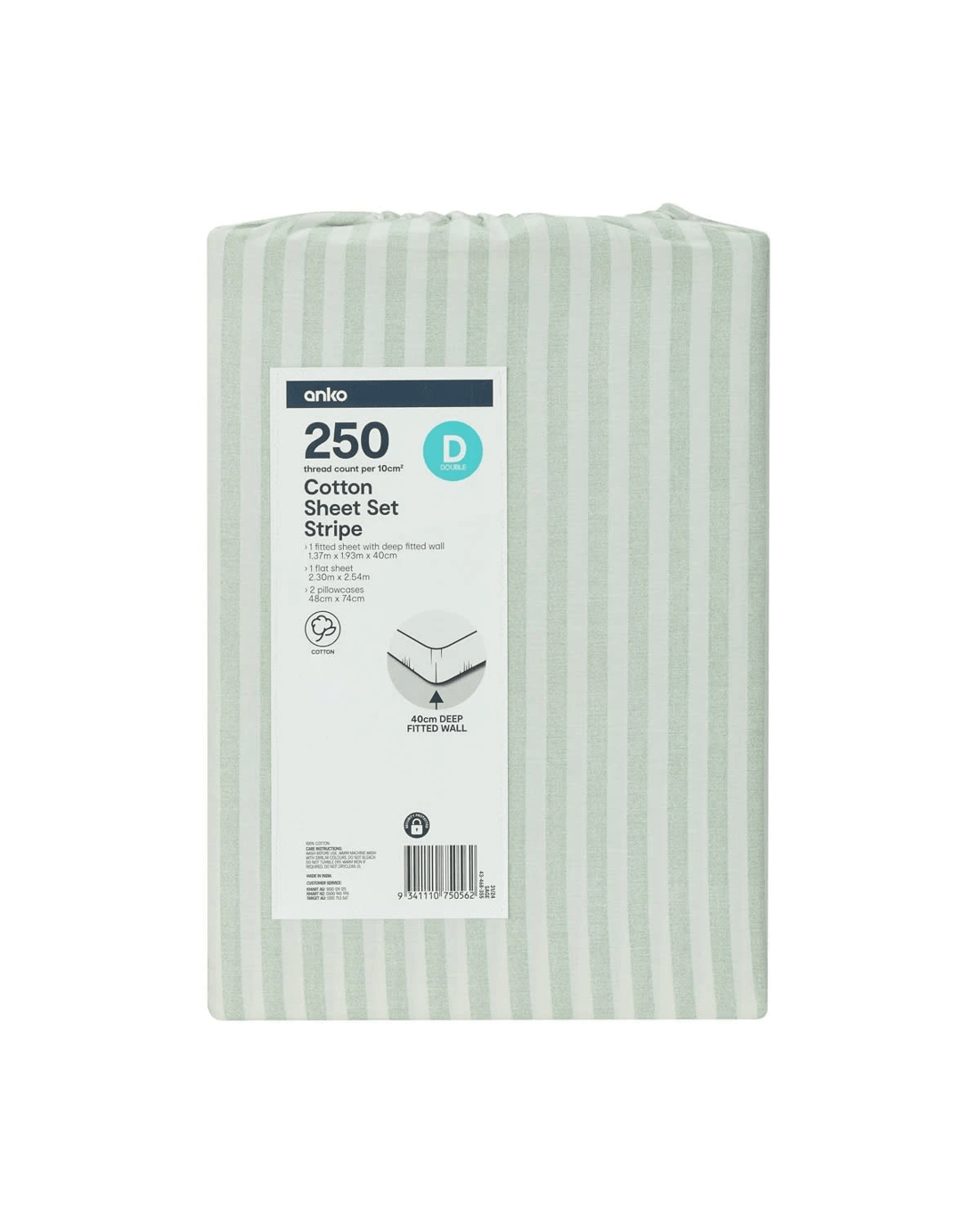 Sold by Kmart250 Thread Count Stripe Cotton Sheet Set - Double Bed, Sage