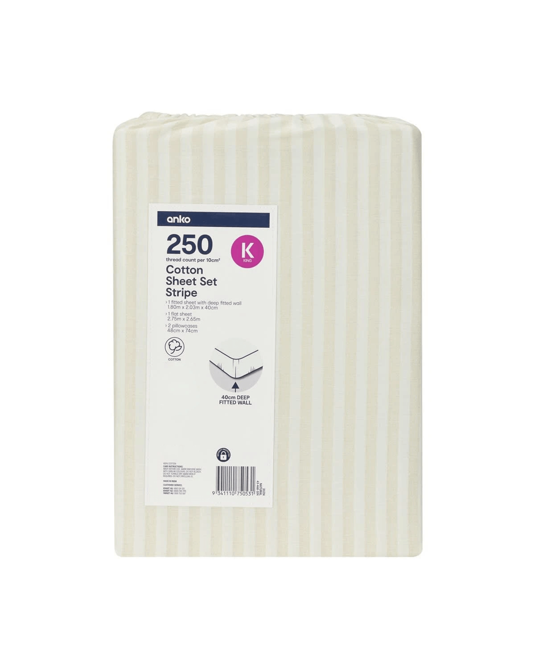 Sold by Kmart250 Thread Count Stripe Cotton Sheet Set - King Bed, Natural