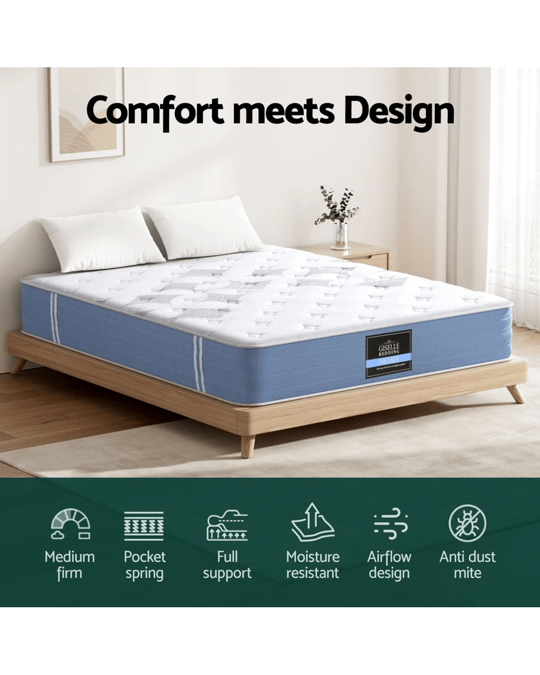 Sold by Aisle Six25cm Giselle Mattress Queen Bed Pocket Spring Mattresses - Queen Bed - White