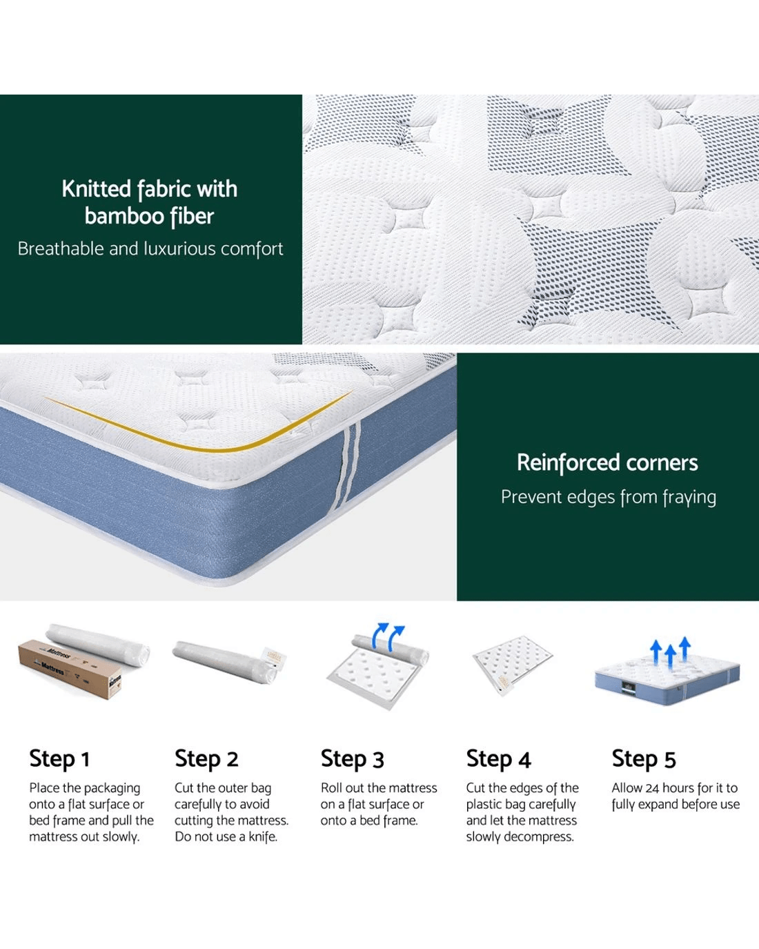 The Giselle Bedding Snow Series Medium Firm Mattress combines luxury and practicality for Australian homes. Featuring a Euro Top design with hypo-allergenic bamboo fibre fabric, it offers a breathable, soft-touch surface. The independent pocket spring system and enhanced 6-turn coils ensure lasting support and motion isolation, while the high-density foam core enhances spinal alignment. With 25cm thickness and reinforced edge support, this mattress suits all sleeping styles. Delivered vacuum-packed for convenience, it expands effortlessly within 24 hours—no assembly needed. Available in Single, King Single, Double, Queen, King sizes.