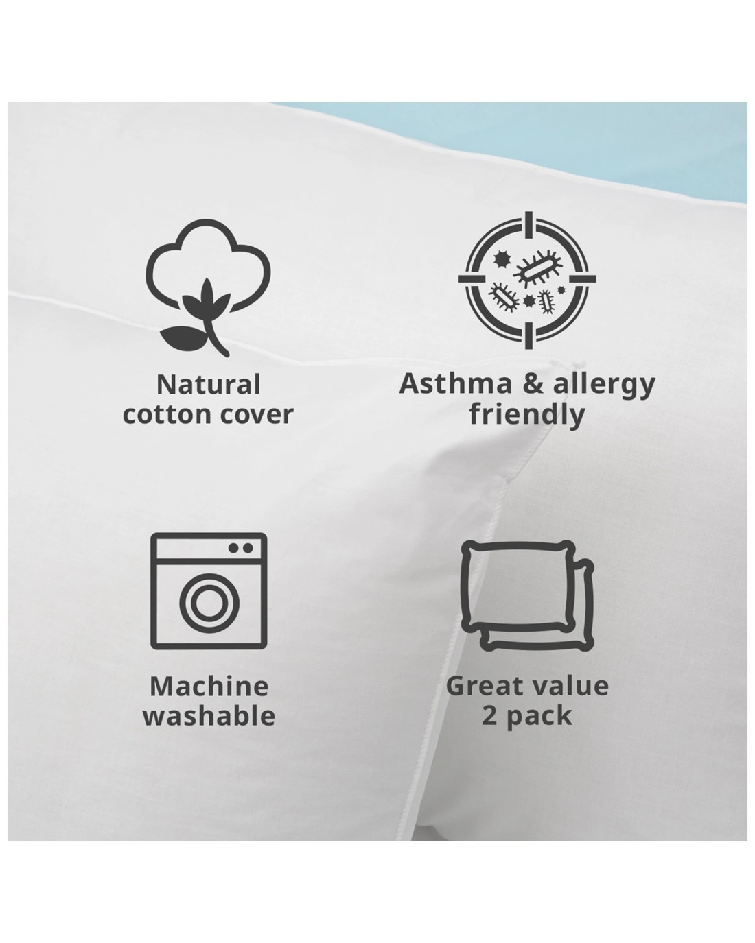 The premium Ultrafibre(R) polyester filling is treated with Tontine BIOGUARD(R) to inhibit the growth of mould, bacteria, and dust mites, which are common triggers for asthma and allergies. These pillows are approved by the National Asthma Council of Australia's Sensitive Choice(R) program, ensuring they meet high standards for allergy-friendly bedding.