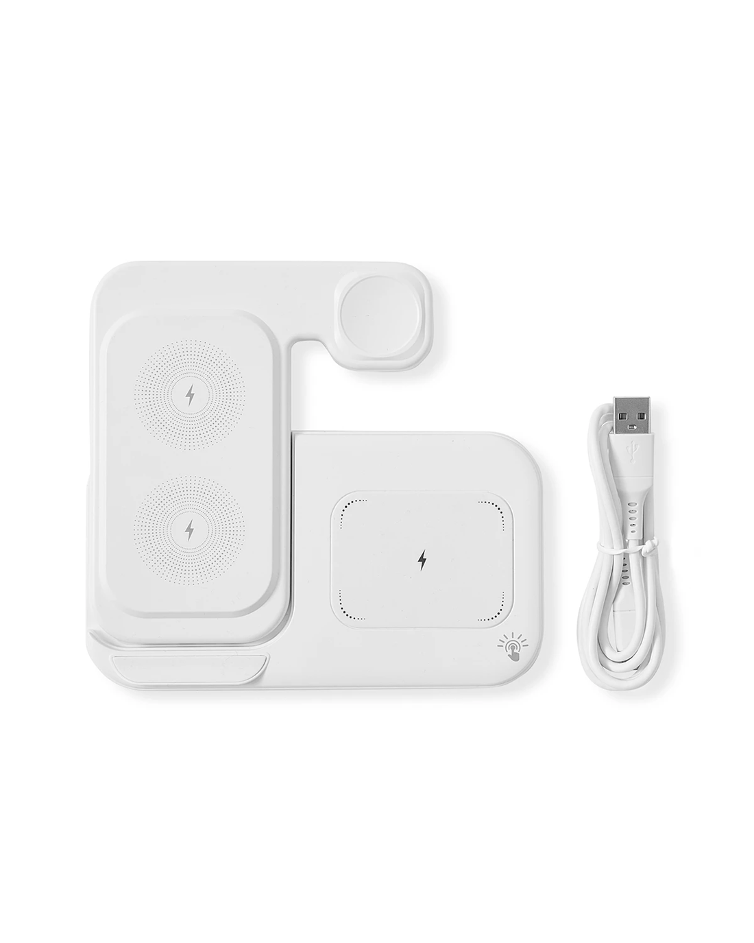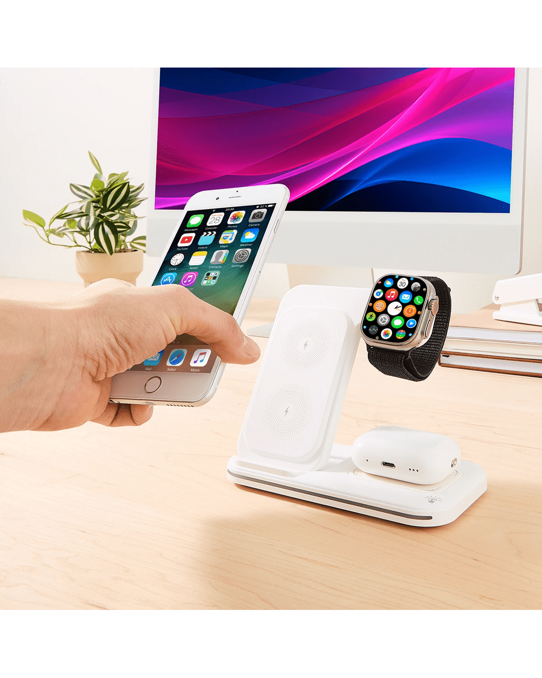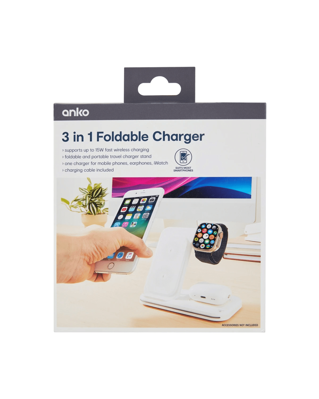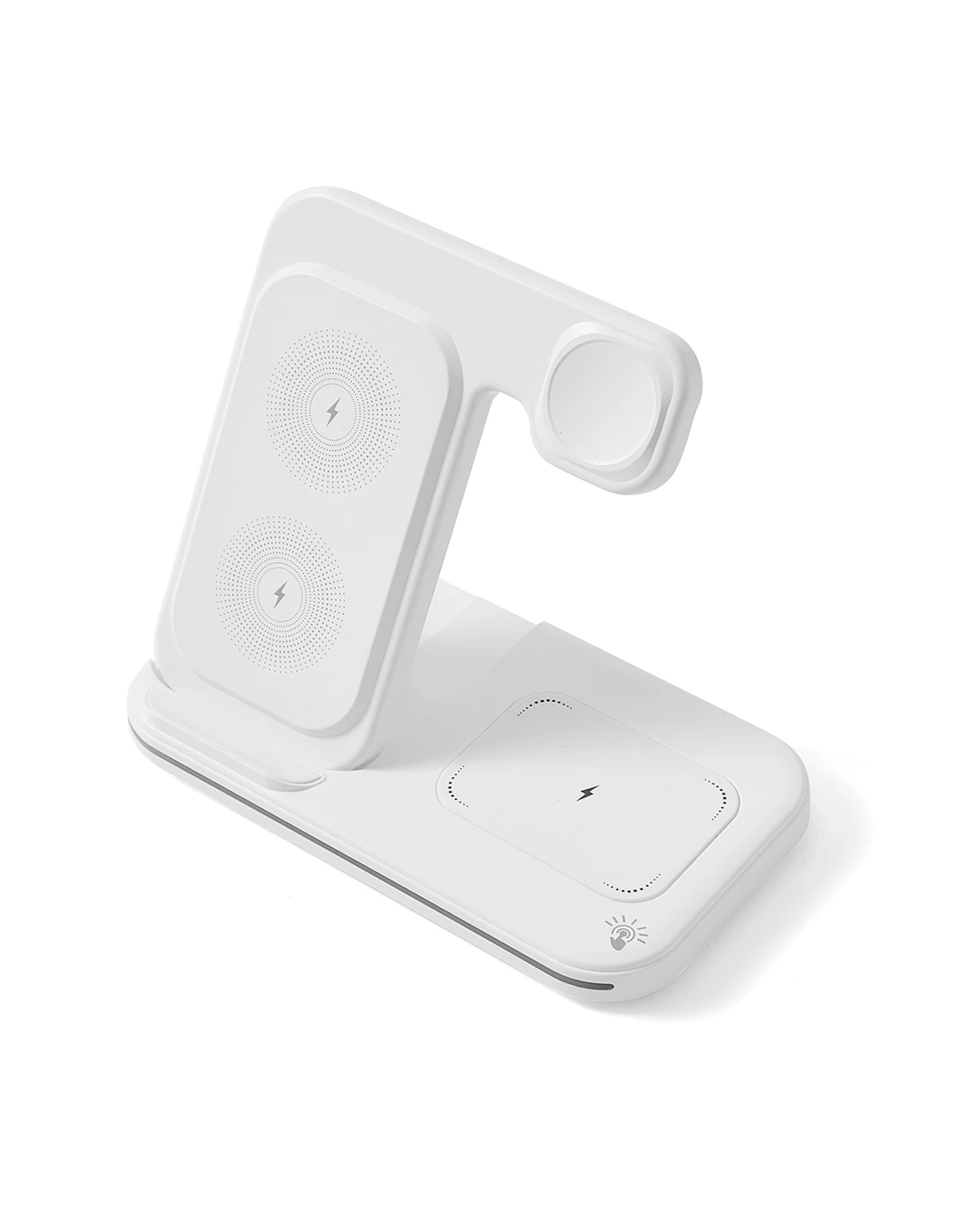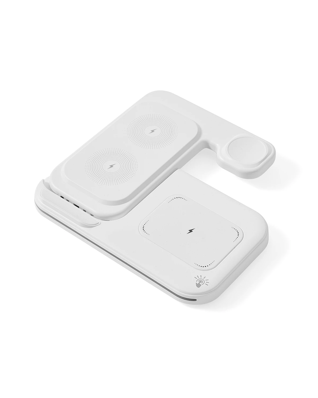 The 3-in-1 Foldable Wireless Charger is a compact and efficient charging solution for your devices. Designed to power your phone, smartwatch and earbuds simultaneously, it folds for easy portability. Perfect for home, office, or travel!