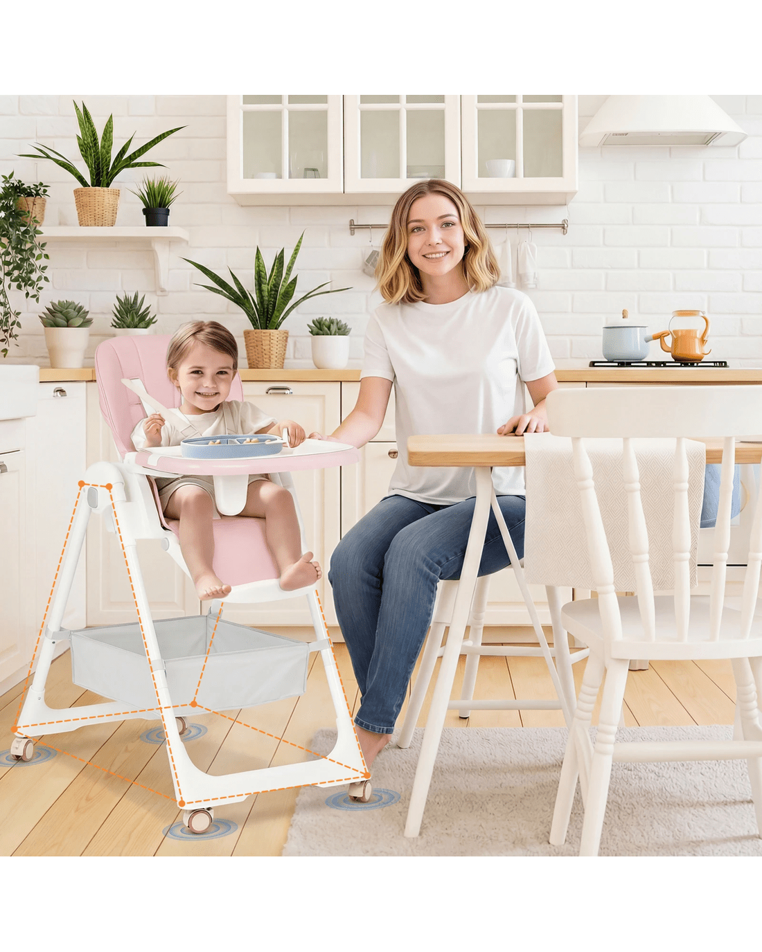 3-in-1 Folding Baby High Chair Toddler Feeding Chair - Pink