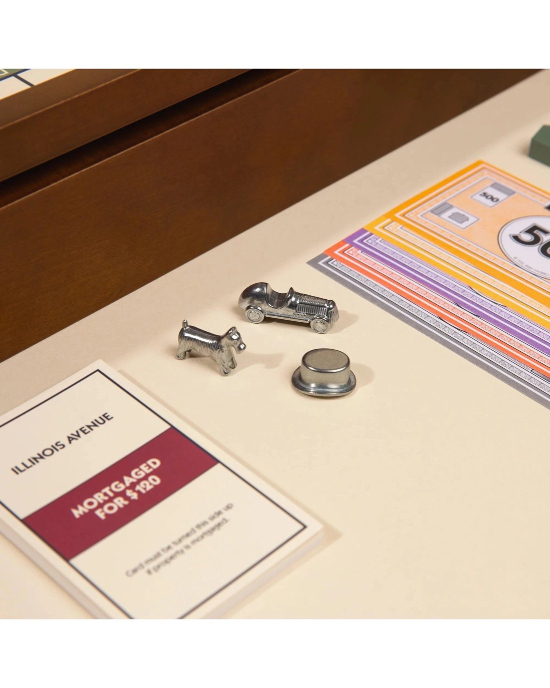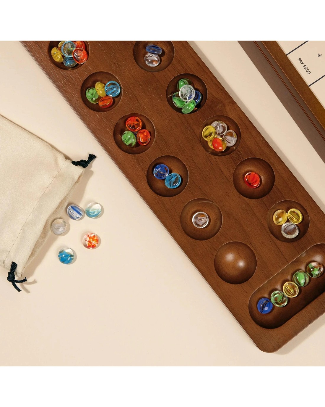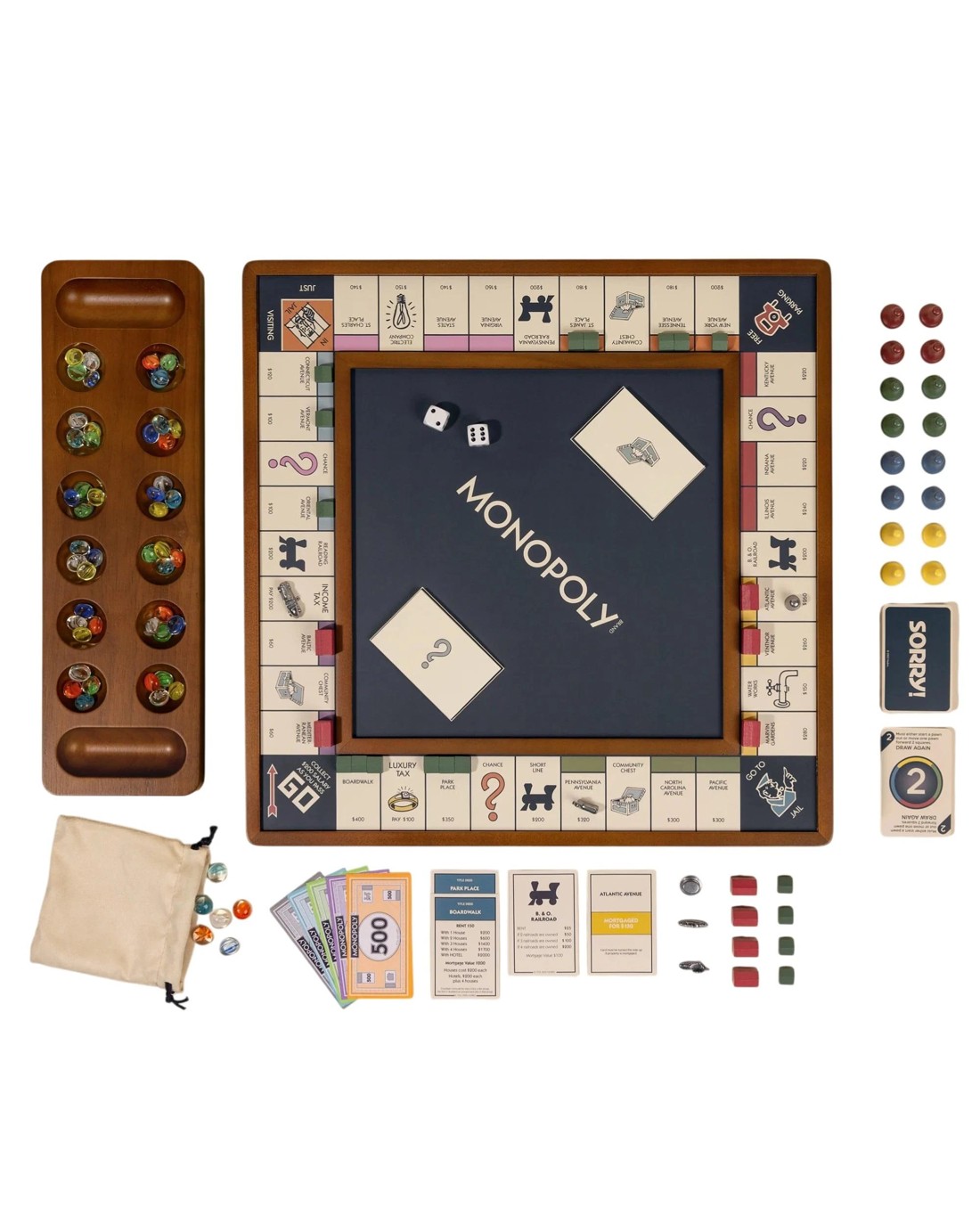 This versatile game collection brings together Monopoly, Sorry!, and Mancala in one beautifully built wooden cabinet. Featuring a reversible game board and built-in storage under the lid, it keeps the components for each game neatly organised and easy to access. Whether you're building a real estate empire, sending opponents back to start, or capturing sparkling glass beads, this compact design makes it simple to switch from one classic to the next. With its sturdy wood construction and crisp detailing, it's made to be played often and kept on display—an inviting centerpiece for game night. Monopoly: Ages: 8 + | Players: 2 - 6 Sorry!: Ages: 6 + | Players: 2 - 4 Mancala: Ages: 6 + | Players: 2