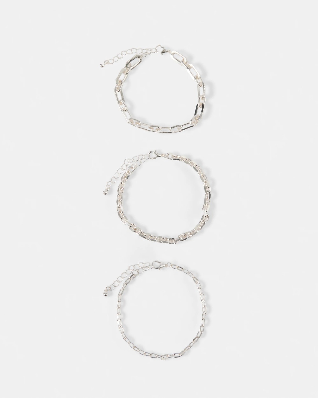 3 Pack Chain Bracelets - Silver Tone