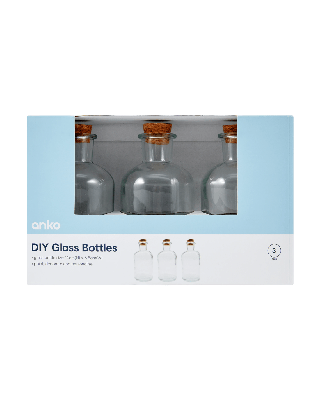 Sold by Kmart3 Pack DIY Glass Bottles
