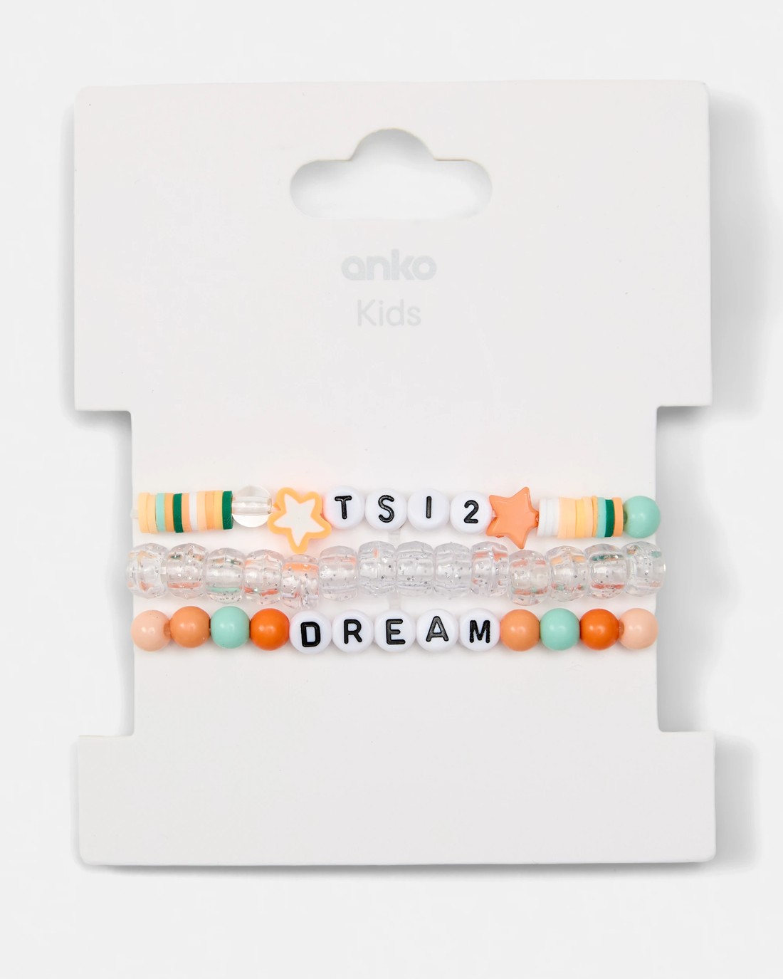 Add a playful touch to your child's look with the 3 Pack Dream Bracelets set. Perfect for mixing and matching, they bring charm and creativity to kids' accessory collections.