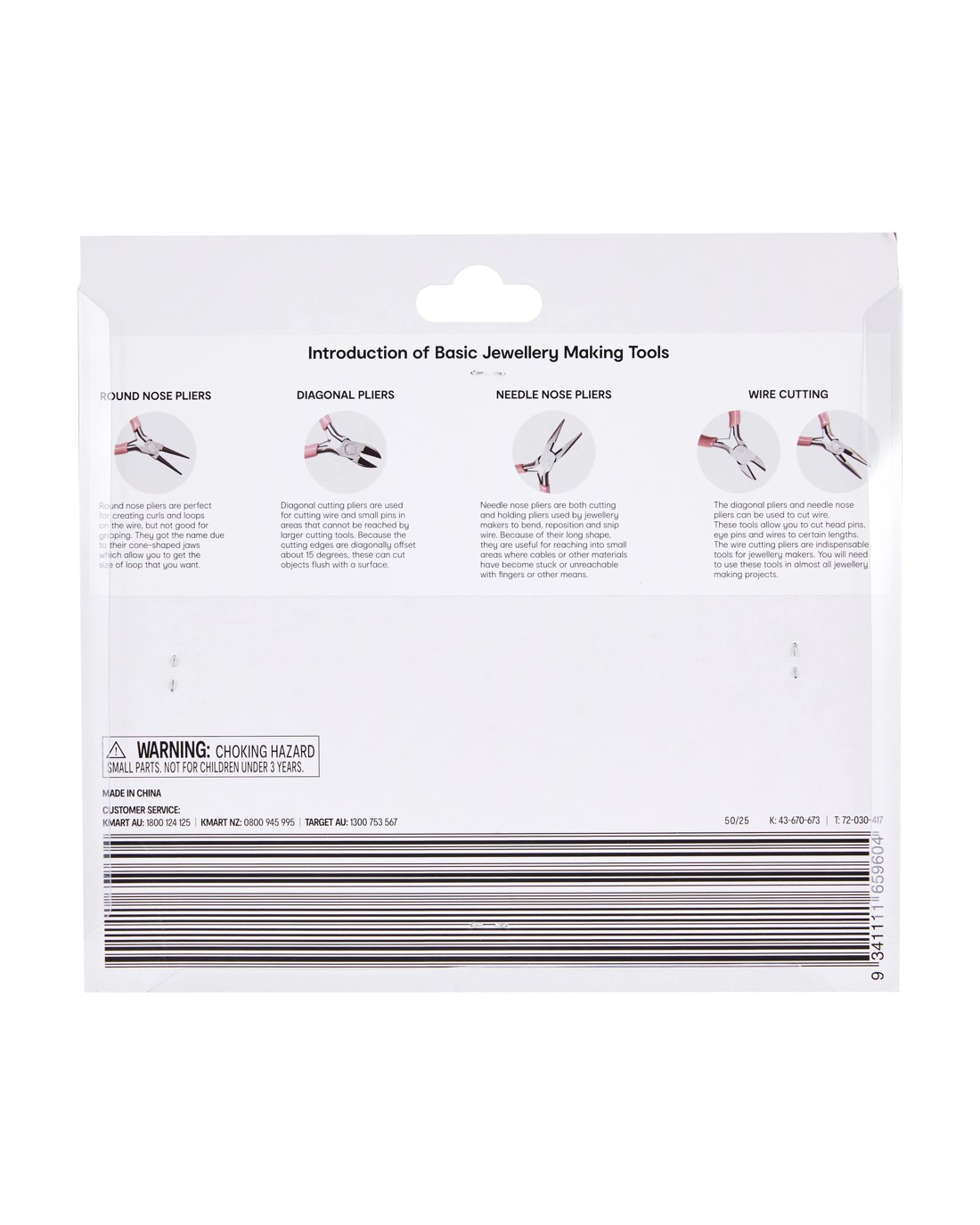 • Includes 1 x round nose pliers, 1 x diagonal pliers and 1 x needle nose pliers