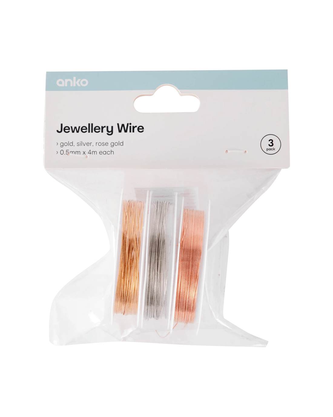 Sold by Kmart3 Pack Jewellery Wire - Gold Look, Silver Look and Rose Gold Look