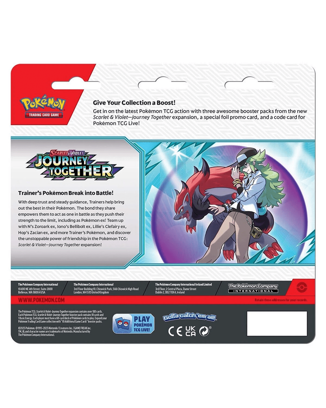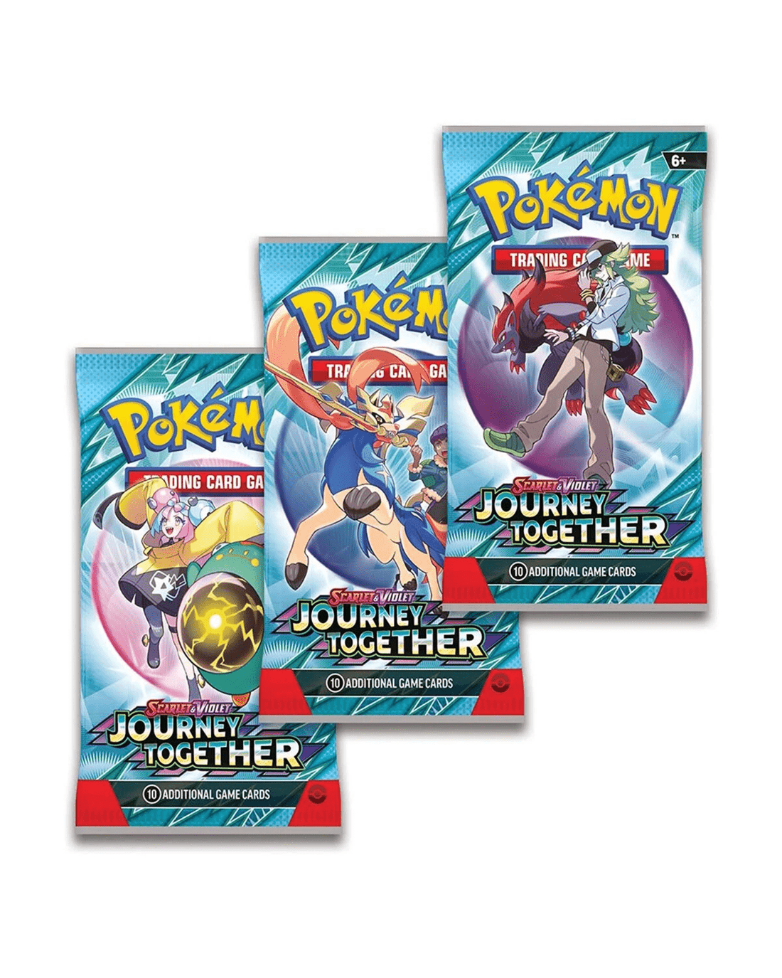 • Get in on the latest Pokemon TCG action with three awesome booster packs from the new Scarlet & Violet - Journey Together expansion, a special foil promo card, and a code card for Pokemon TCG Live!