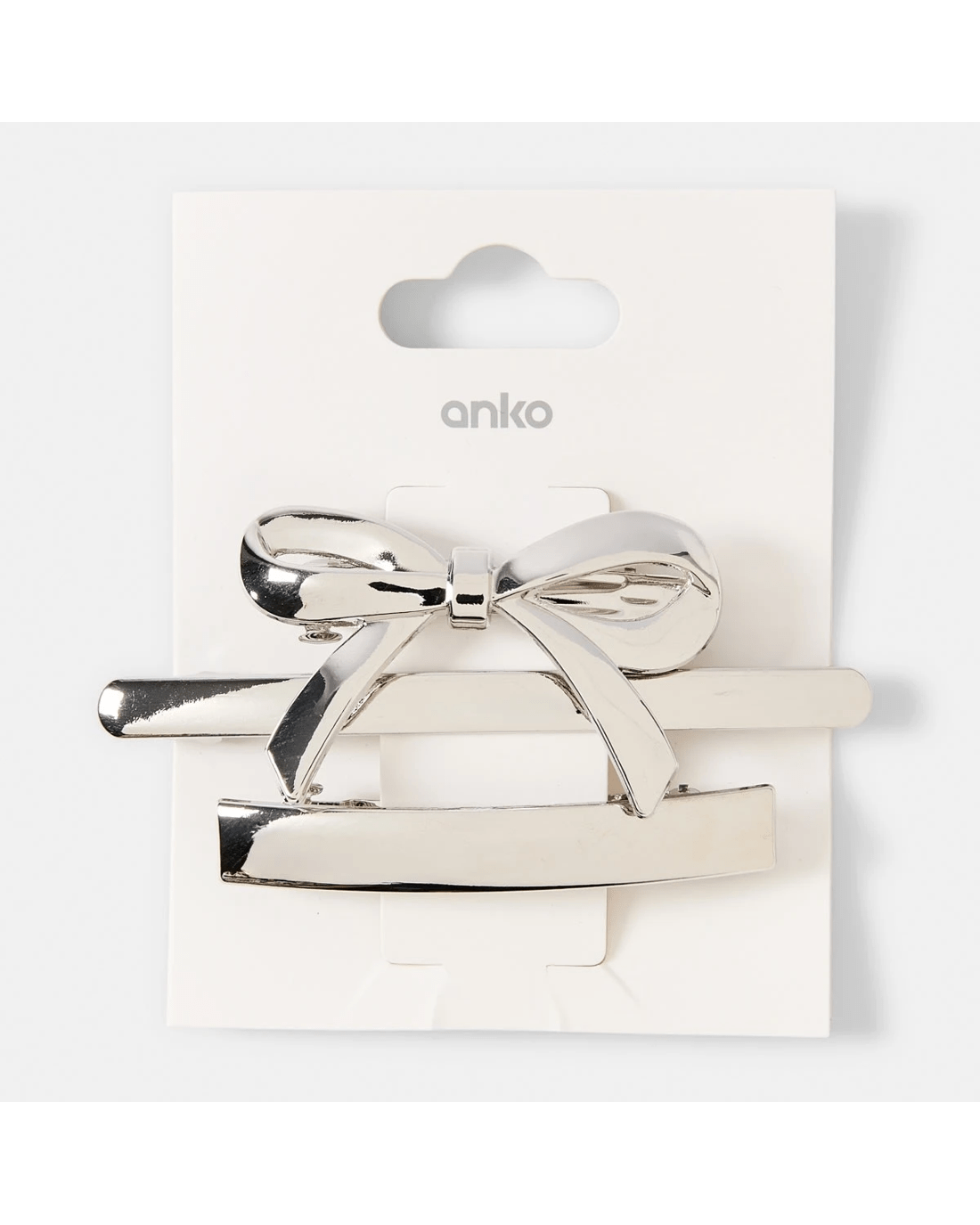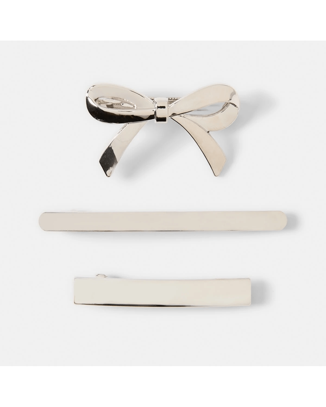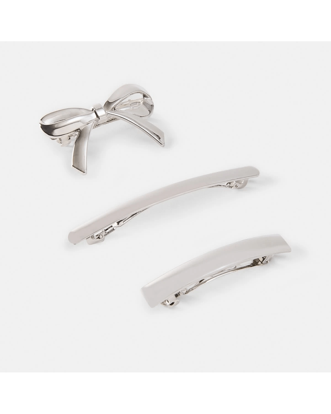 3 Pack Silver Tone Bow Barrette Hair Clips