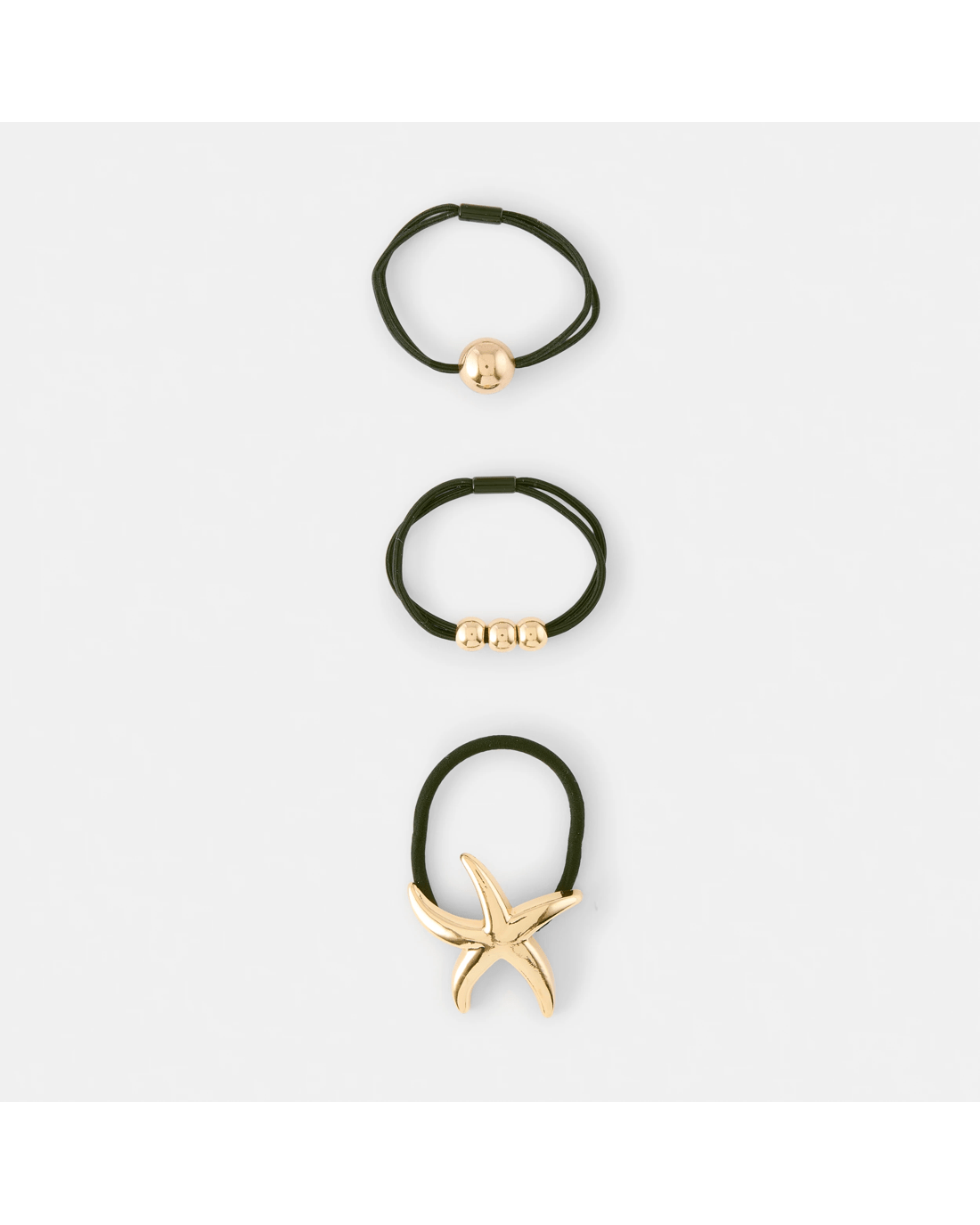 Sold by Kmart3 Pack Starfish Hair Ties - Gold Tone and Black