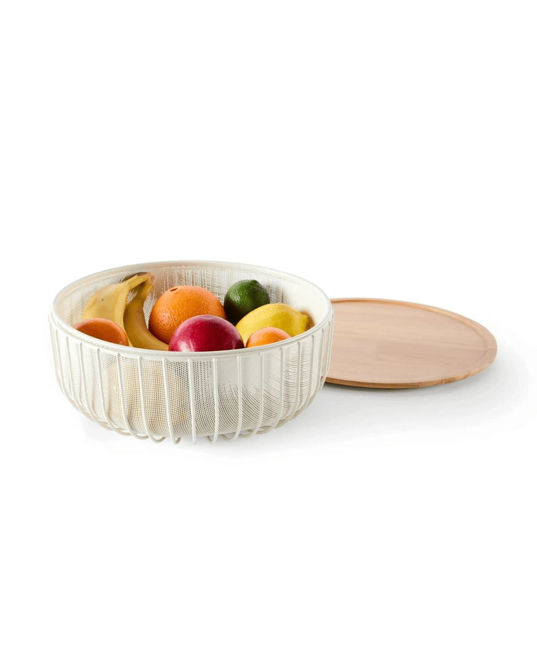 Sold by Kmart3 Piece Metal and Wood Fruit Bowl - White