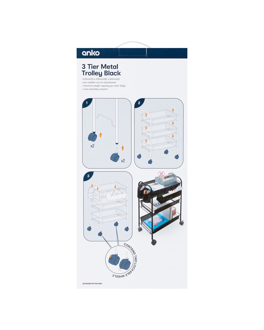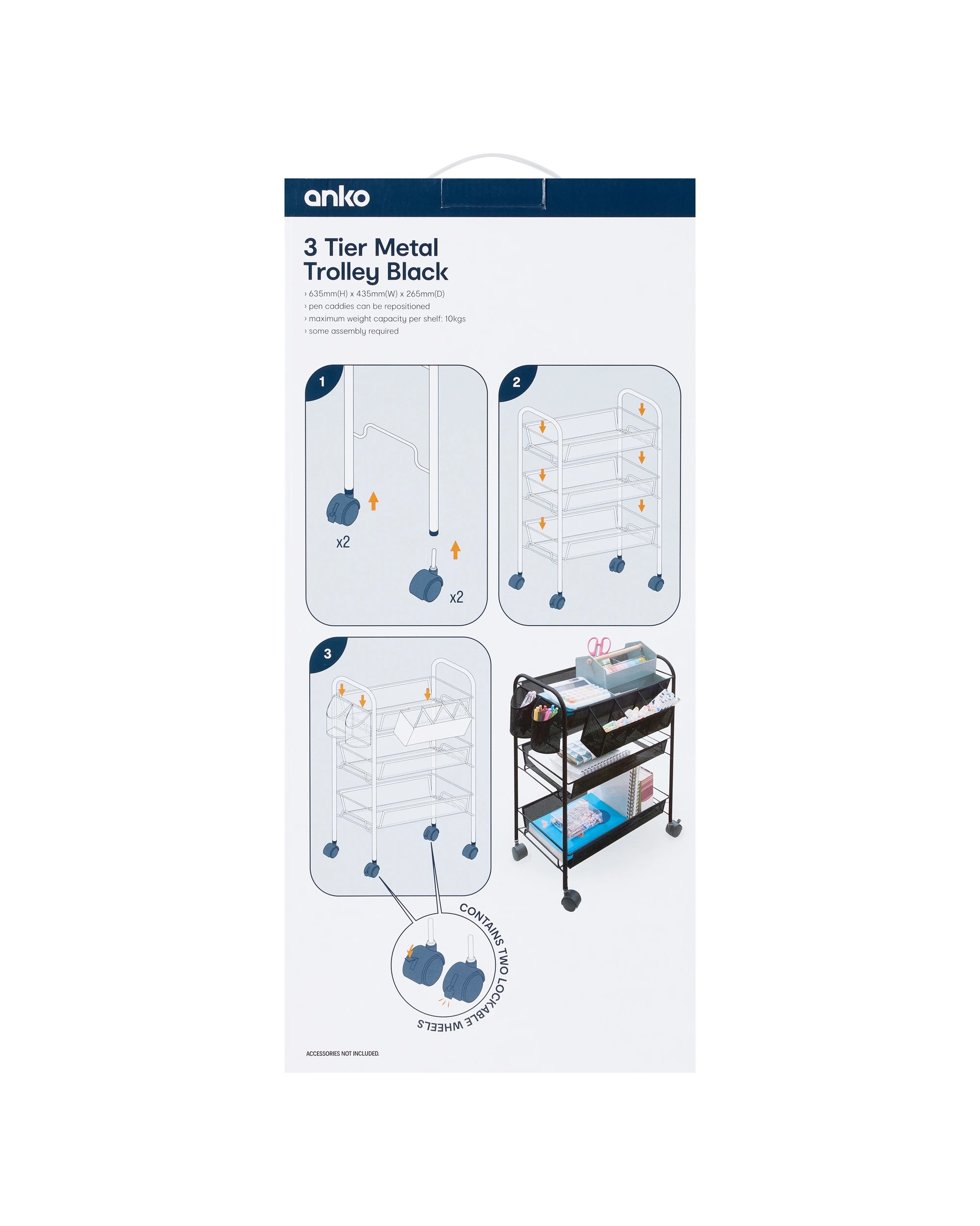 Sold by Kmart3 Tier Metal Trolley - Black