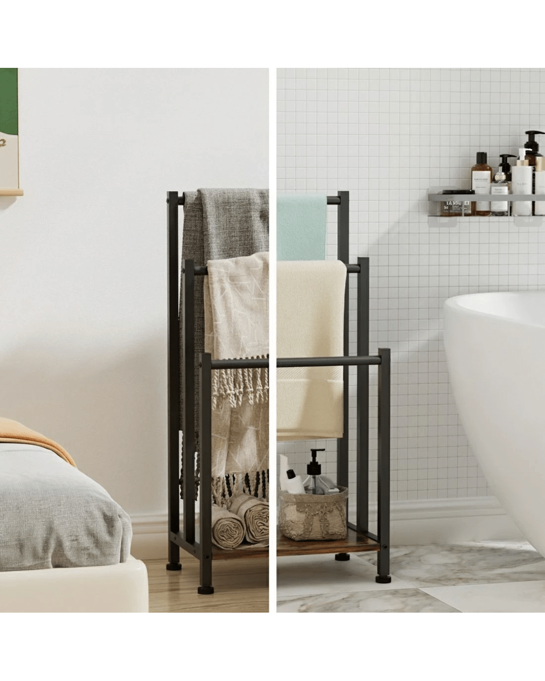 Sold by Aisle Six3 Tier Towel Rack Rail Freestanding Holder Bathroom Organizer Laundry Drying Bar - Black