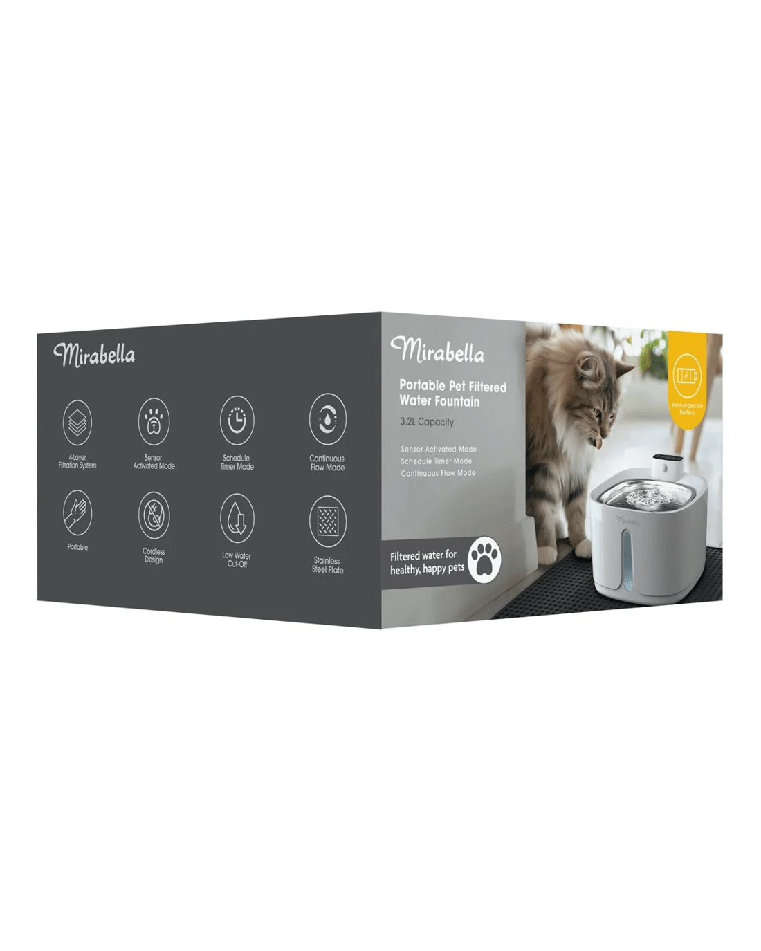 The Mirabella Portable Pet Filtered Water Fountain keeps your furry friend hydrated with fresh, clean water wherever they are. With a generous 3.2 litres capacity and 4-layer filtration system, it ensures every sip is pure, cool and refreshing.