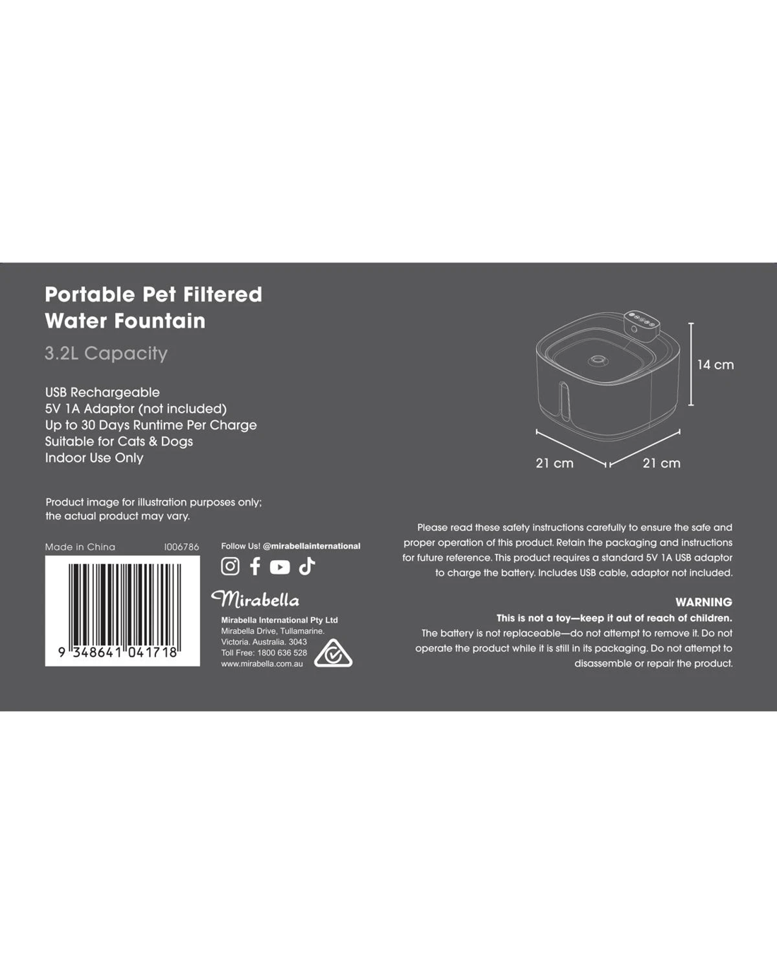 Smart, portable, and hygienic - the Mirabella Portable Pet Filtered Water Fountain makes staying hydrated effortless for your pet and worry-free for you.