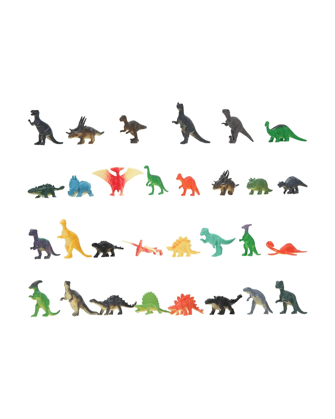 Keep your creative playtime alive with this set of 30 colourful dinosaurs. T-rex and triceratops and all your favourite dinos are here to roam in your playtime adventures.