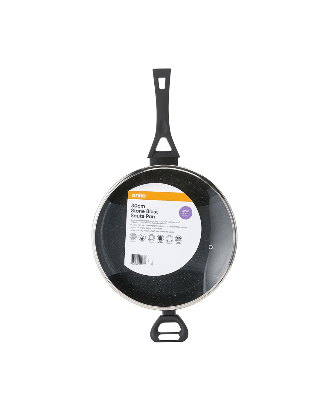 30cm Stone Blast Saute Pan - Black