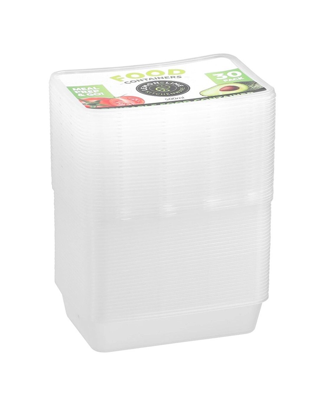 Sold by KG SuperStore30pk Lemon & Lime Reusable 500ml Rectangle Food Container/storage W/ Lid Clear - Clear