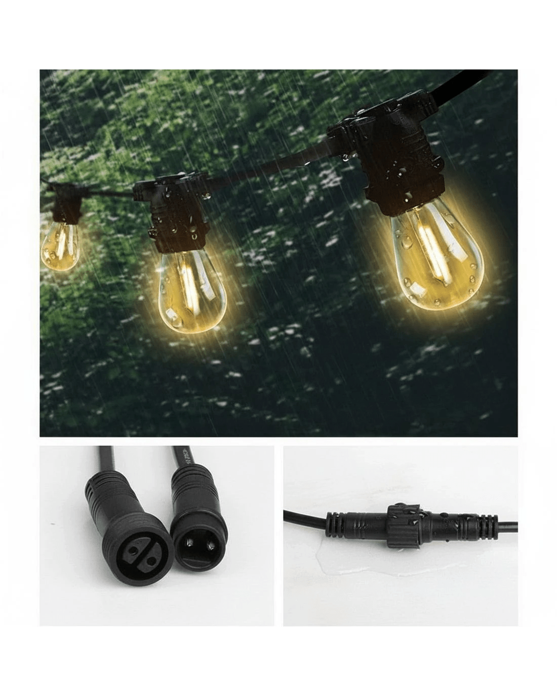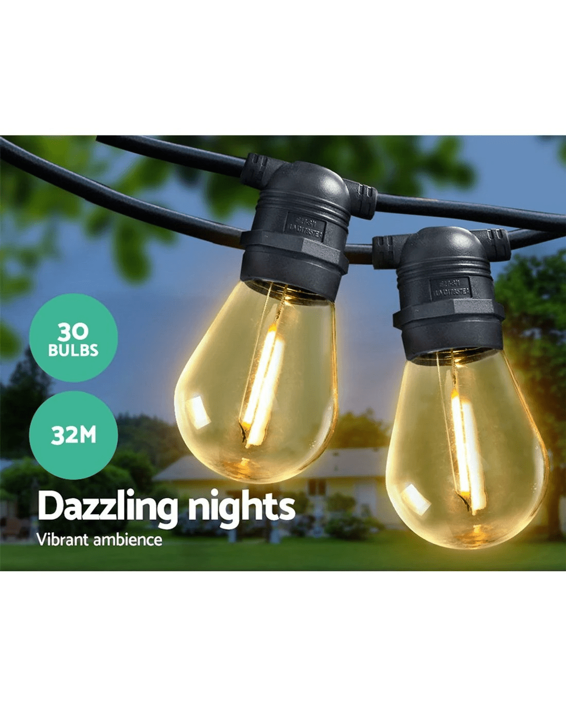 32m LED Festoon String Lights Christmas Decorations Wedding Party Outdoor Garden - Black