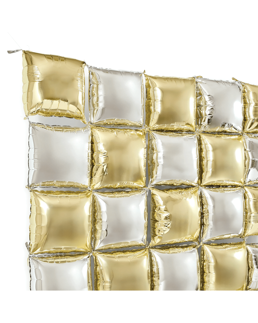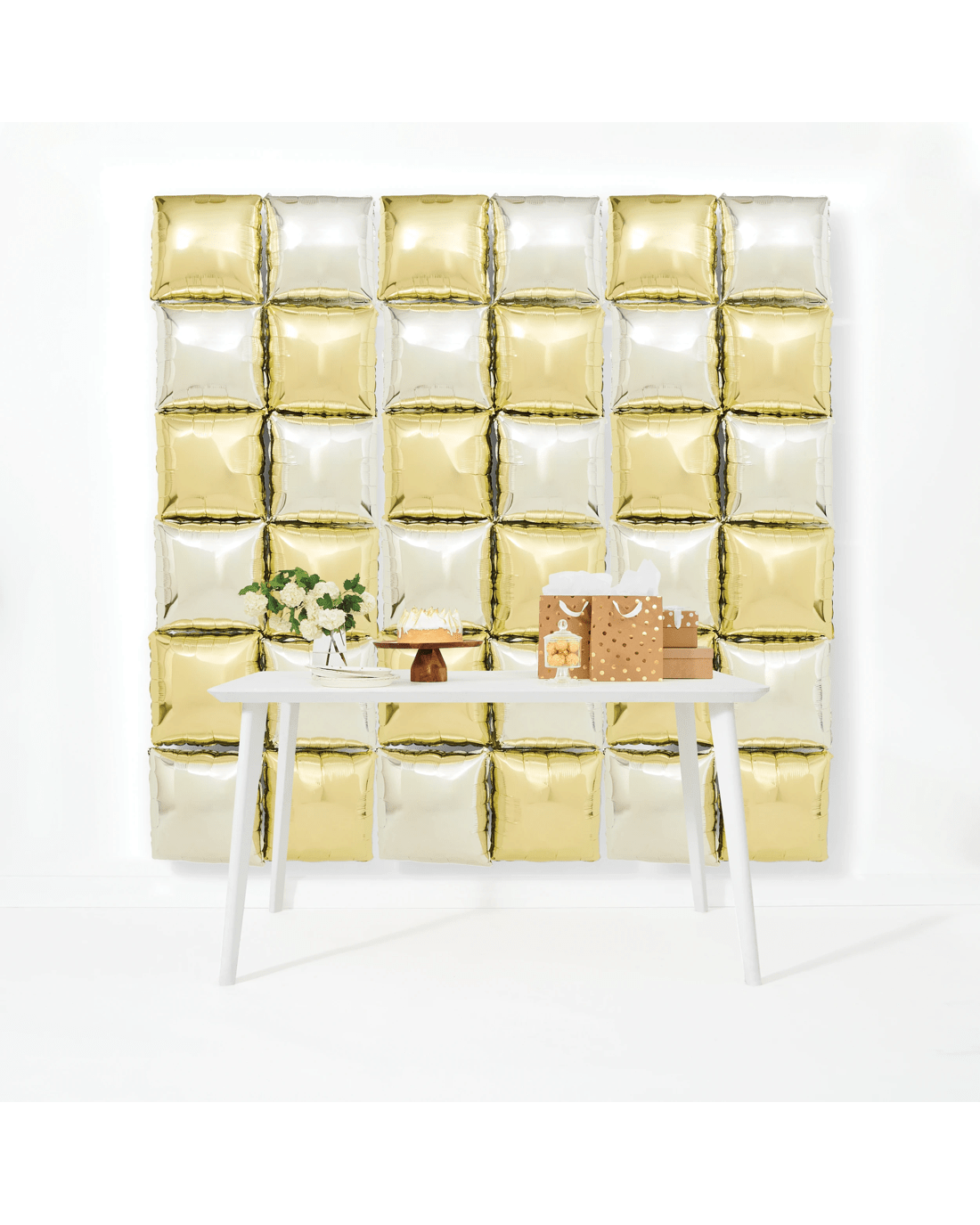 Create a striking party display with the Gold and Silver Foil Balloon Backdrop, perfect for adding shine to celebrations and photo moments.